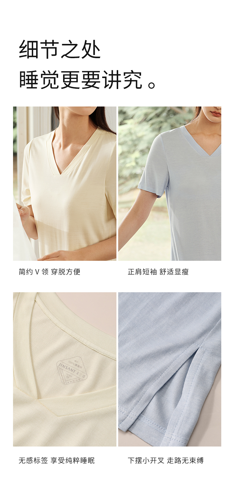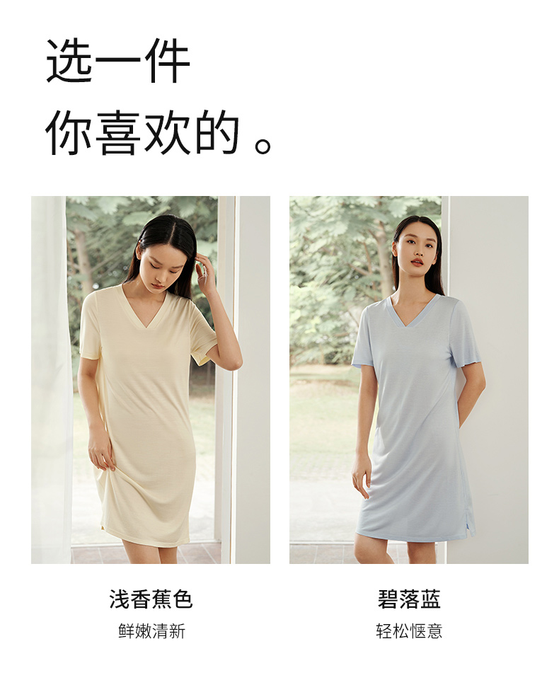【深睡眠蚕丝睡衣】100%桑蚕丝睡裙真丝针织柔软透气家居服金三塔 YZFEA303/YZFEA305