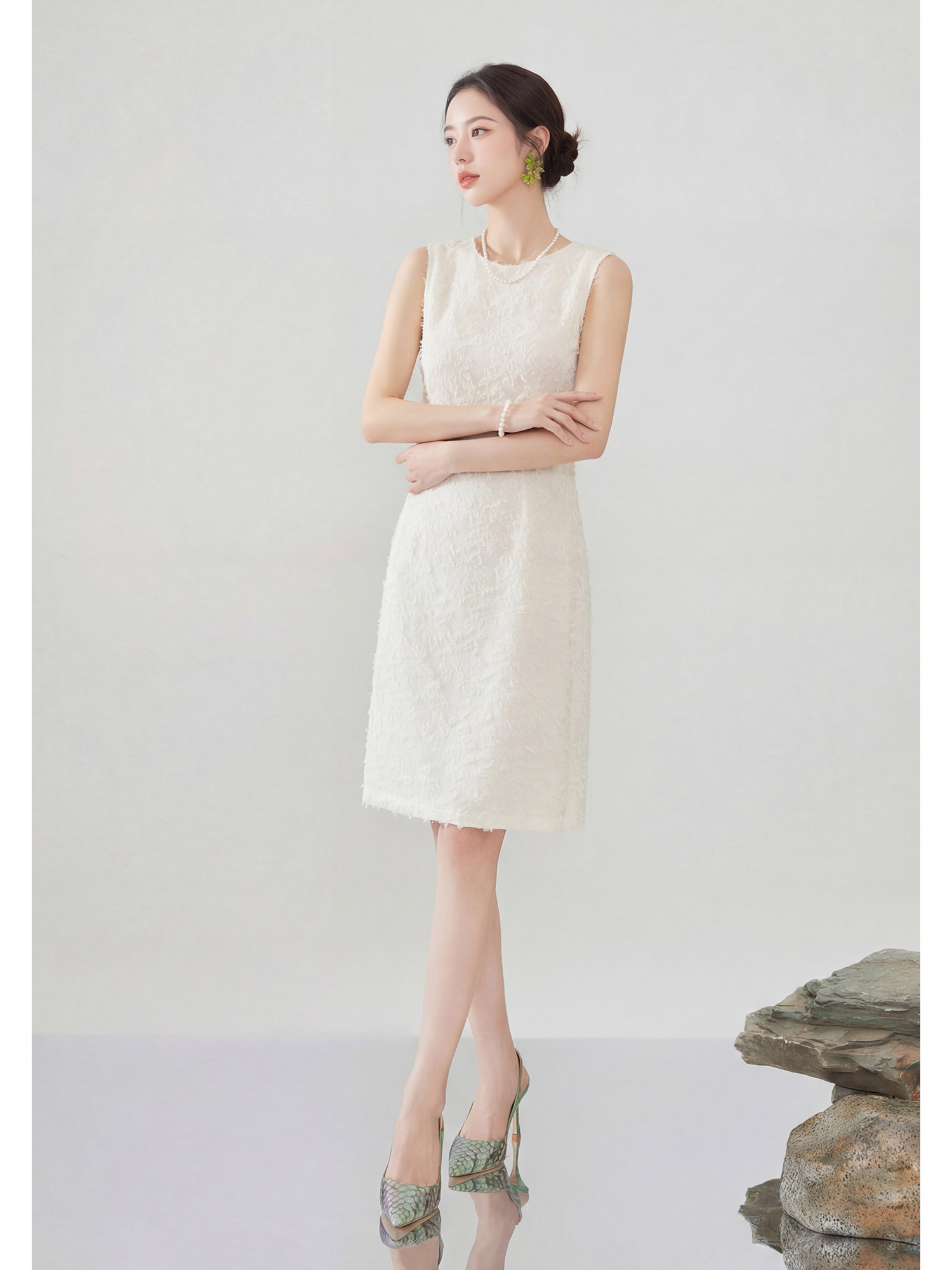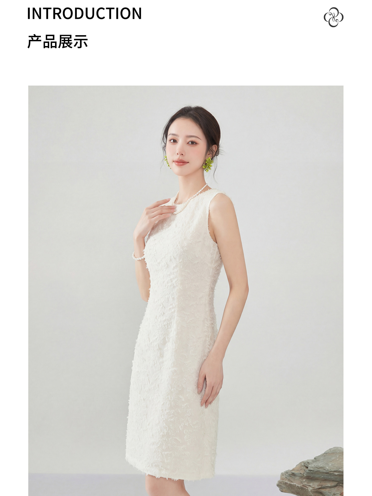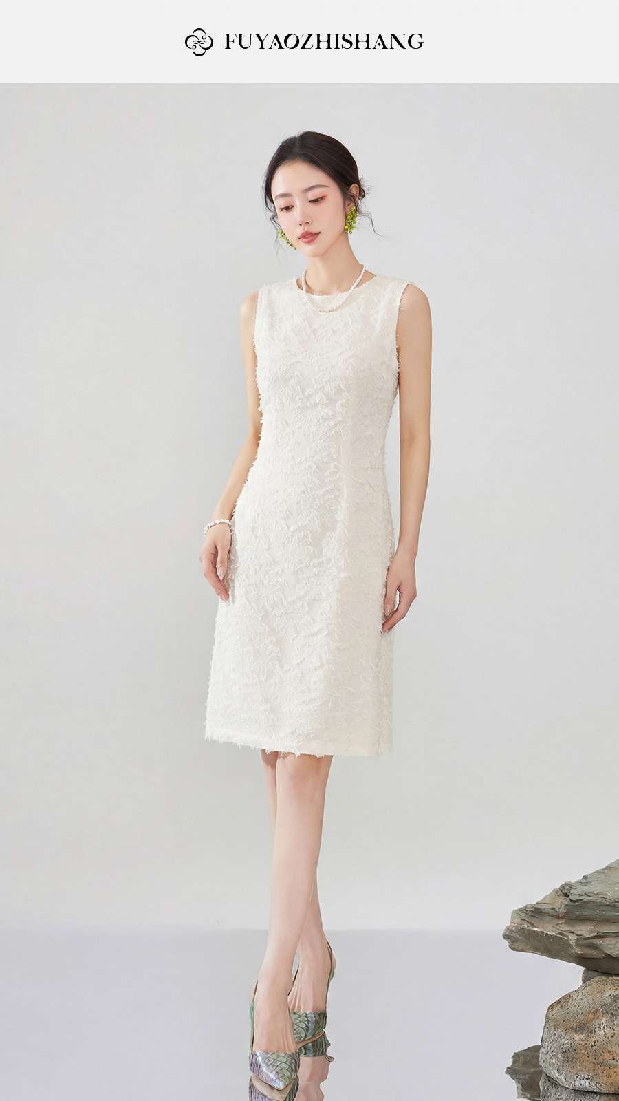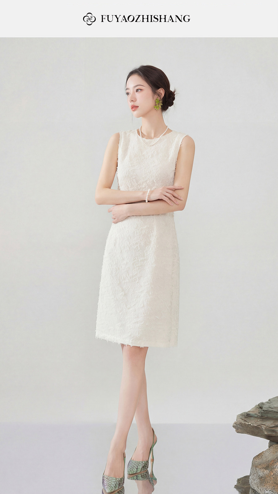 FUYAO扶摇直上 新中式提花背心连衣裙女白色名媛通勤高级感气质裙