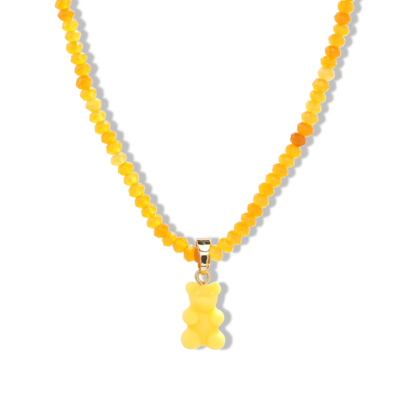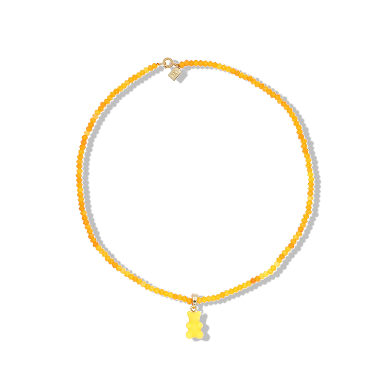 订购4周到|CRYSTAL HAZE-Beaded Nostalgia Bear-黄色小熊 项链(金色环扣)[挪威设计师]