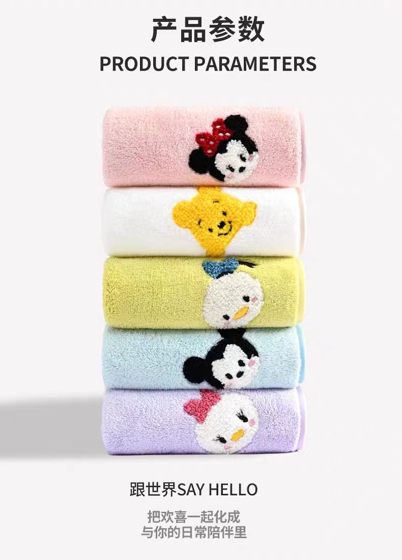 迪士尼 儿童毛巾家用柔软吸水不掉毛珊瑚绒洗脸擦手方巾可挂式居家布艺「五条礼盒装」