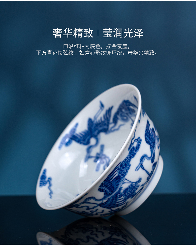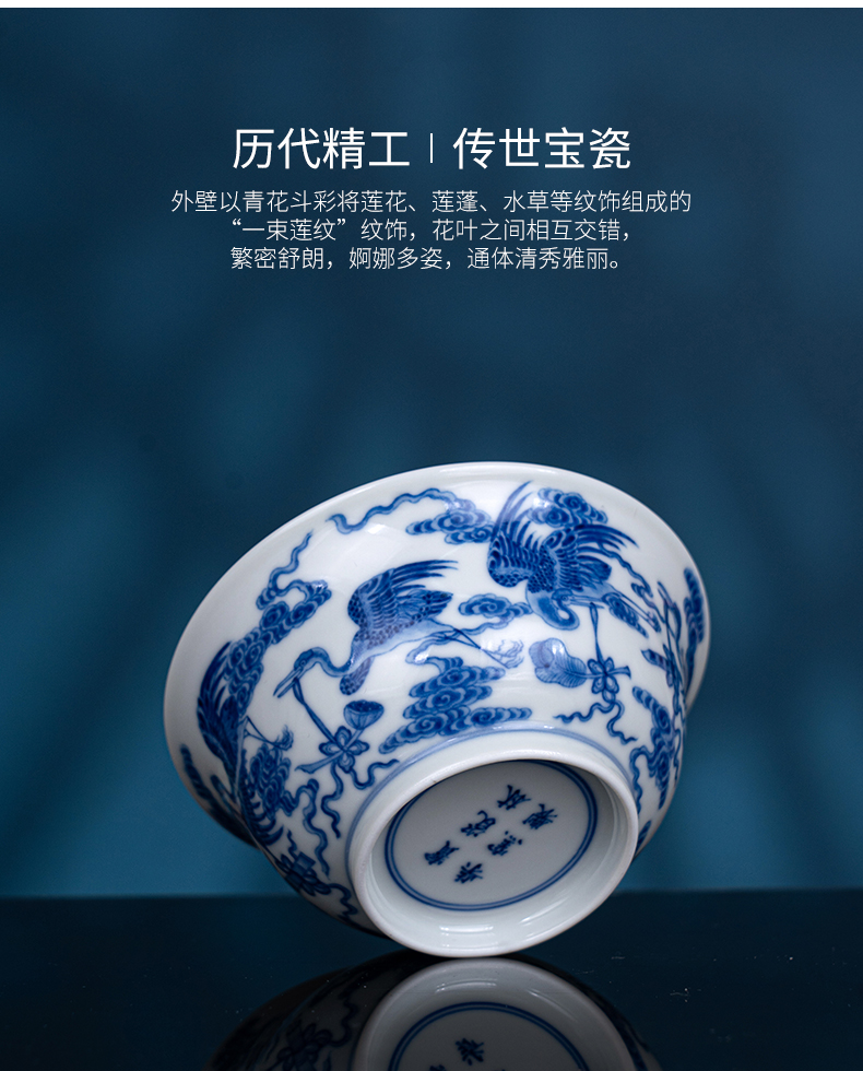 青花柴窑云鹤八宝盏