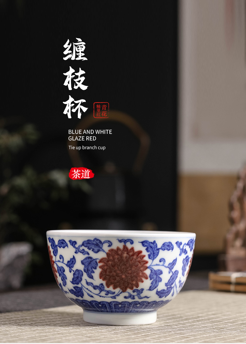 青花釉里红缠枝杯