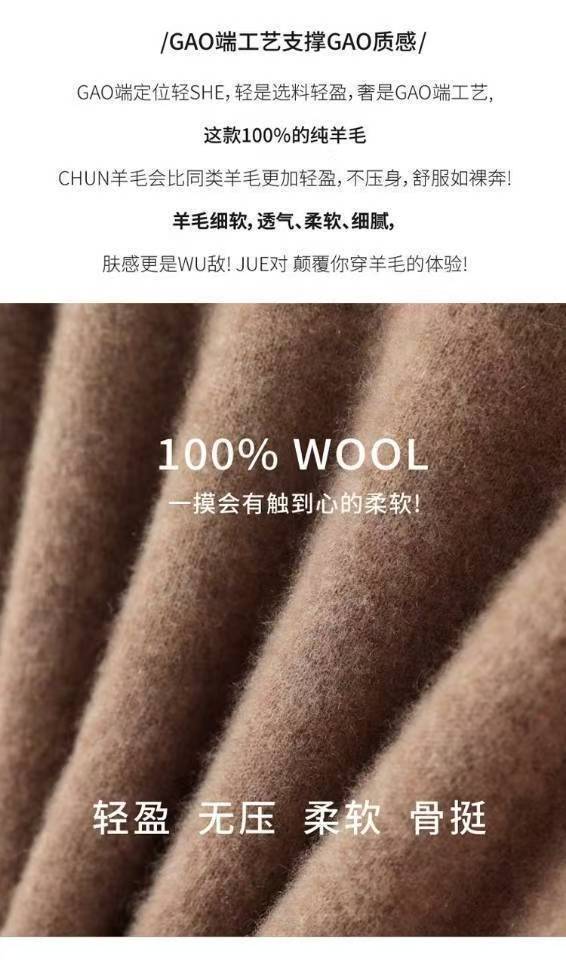 100澳洲羊毛,整件衣服由一根纱线完成没有接缝❗在侧缝、肩部、腋下等均无线头