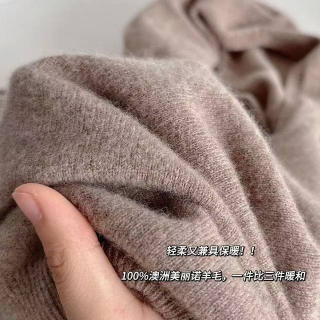毛衣中的“软黄金”甄选90支100%澳洲美利奴羊毛,亲肤细腻柔软,裸穿不扎皮肤。