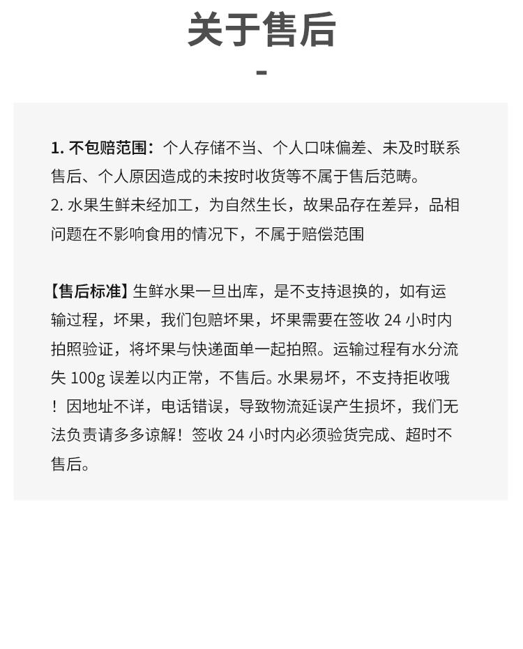 4.有明显的果肉发白,长虫等问题的,一房赔一房。需要清晰把果肉放在袋子前拍照反馈。如因个人存放问题导致解冻过头肉发稀发黑等问题不售后。