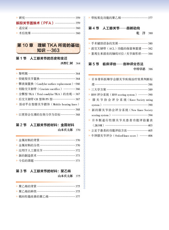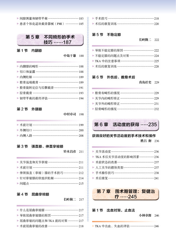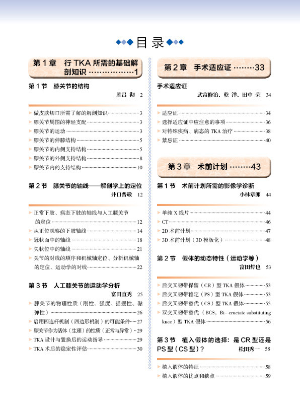 本书涵盖了TKA的基础知识和操作技巧以及并发症的防治,本书作者均为日本临床一线专家,他们将自己的经验总结在这本书中,介绍了TKA的历史、手术方法和技术、最先进的诊断技术、病理特异性的治疗选择,本书在手术方法、切口显露以及各种假体的设计安装方面都进行了详细的介绍,特别是在手术技术方面非常值得医师们参考学习。这本书可以为你的临床实践提供实用的指导。此外,我们用各种各样的插图解释了相关要点。