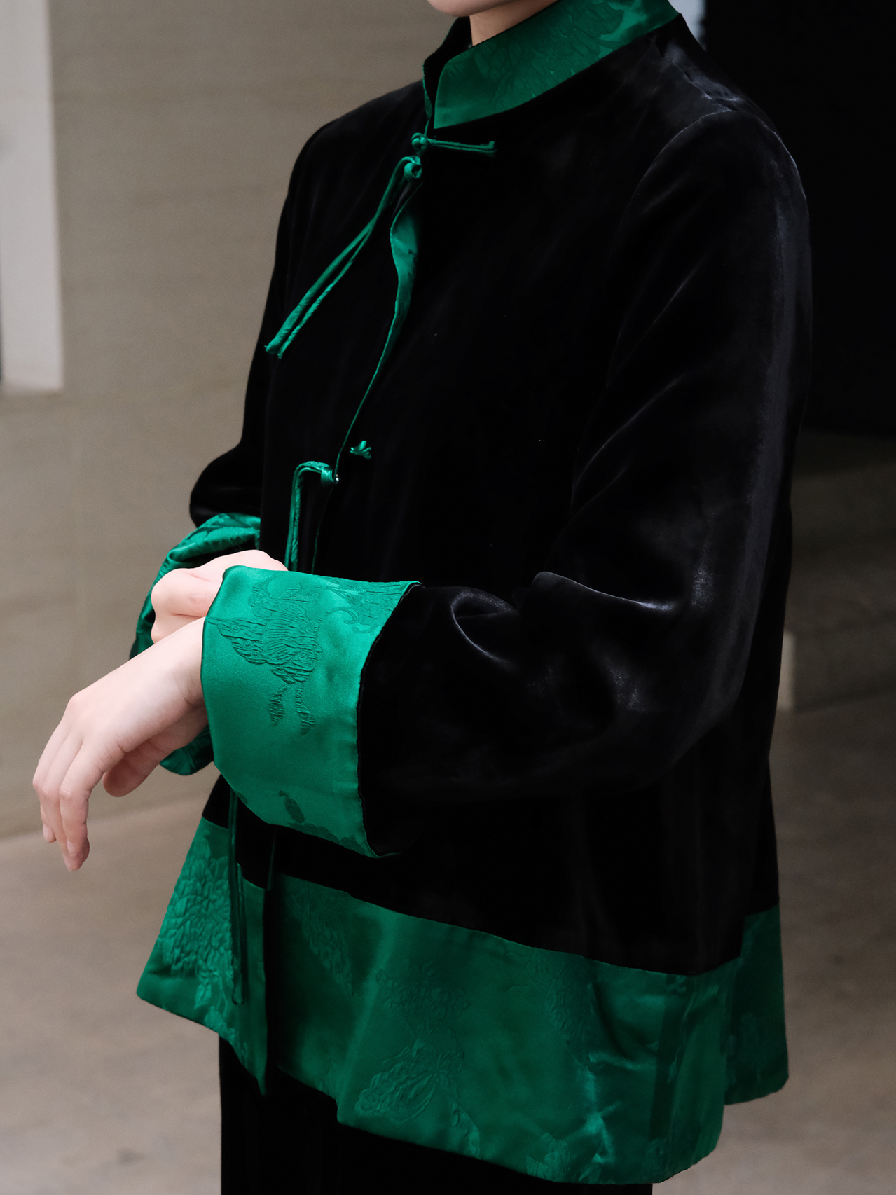 盛唐牡丹| 丝绒配祖母绿蝶恋花纹冠乐绉双面穿外套