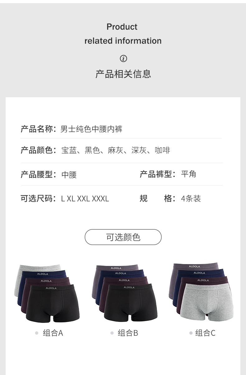 雅黛丽内裤男平角裤纯棉舒适透气男士青年裤头男生短裤四角裤