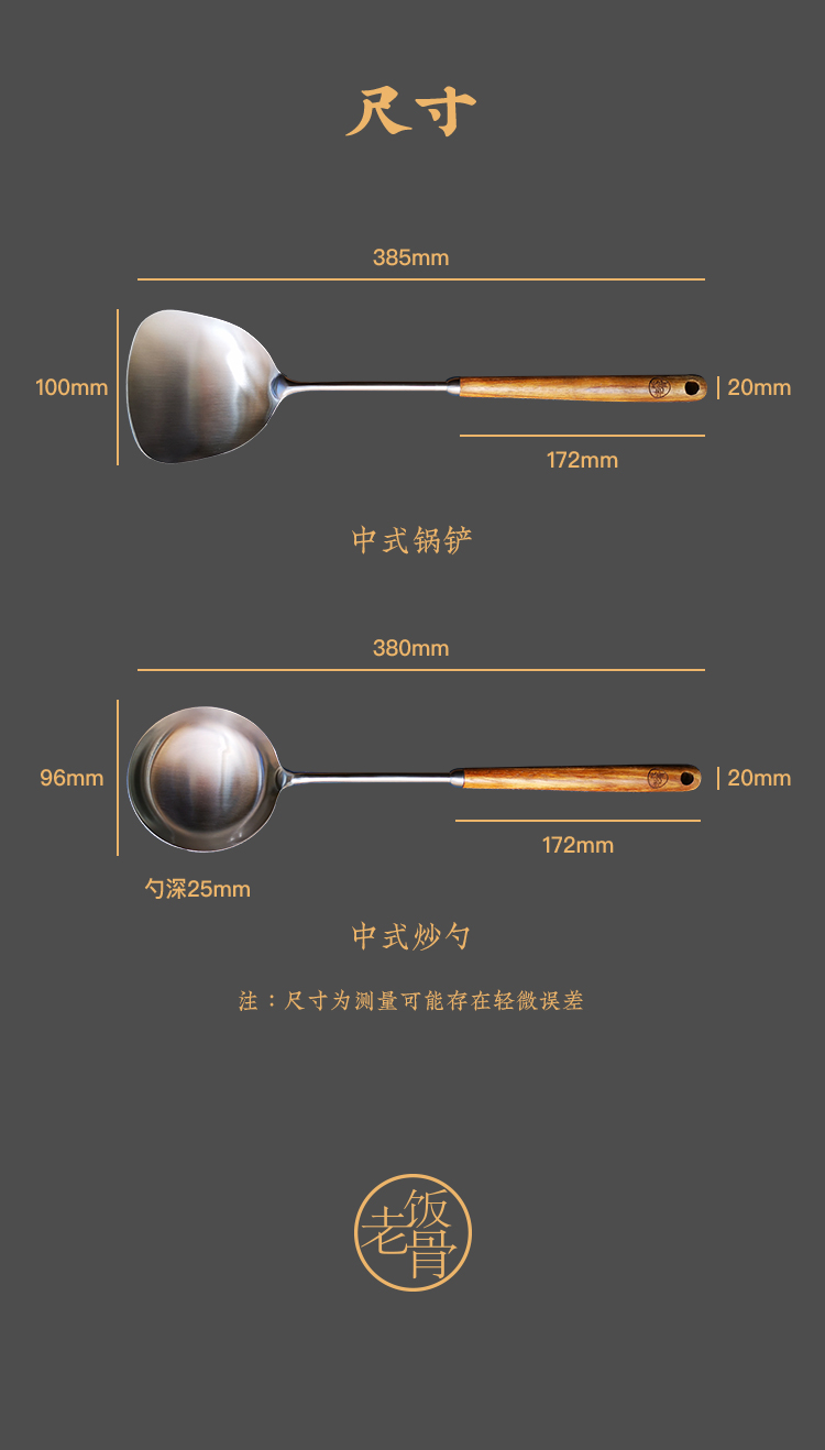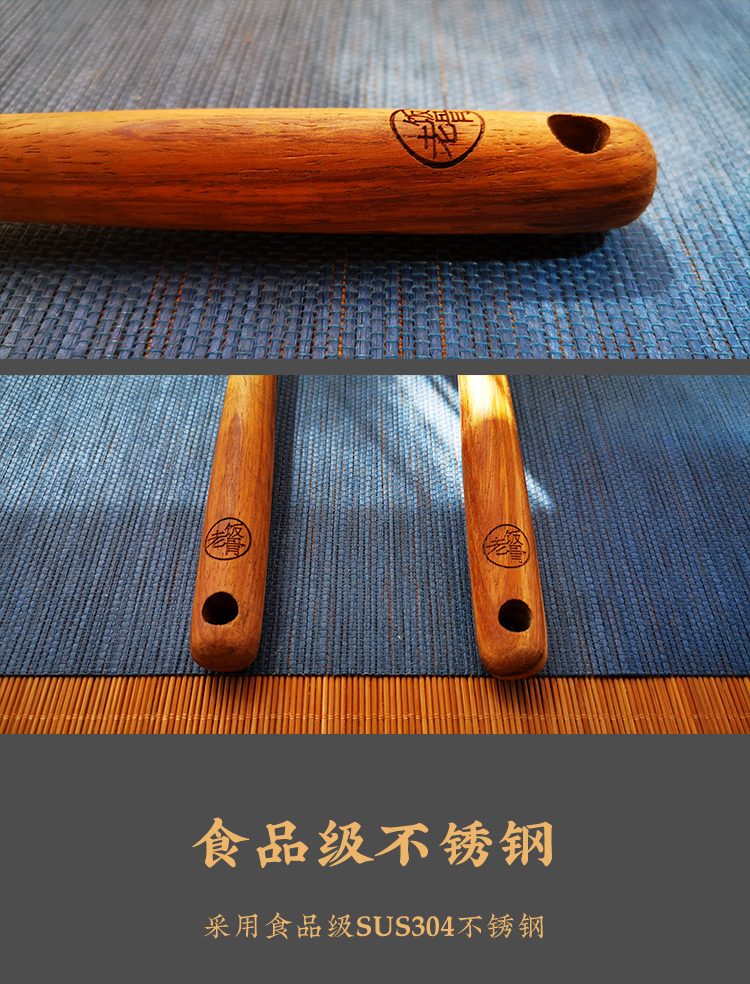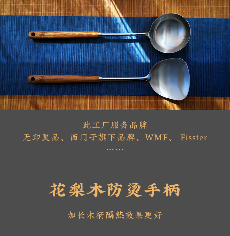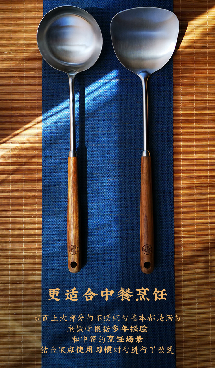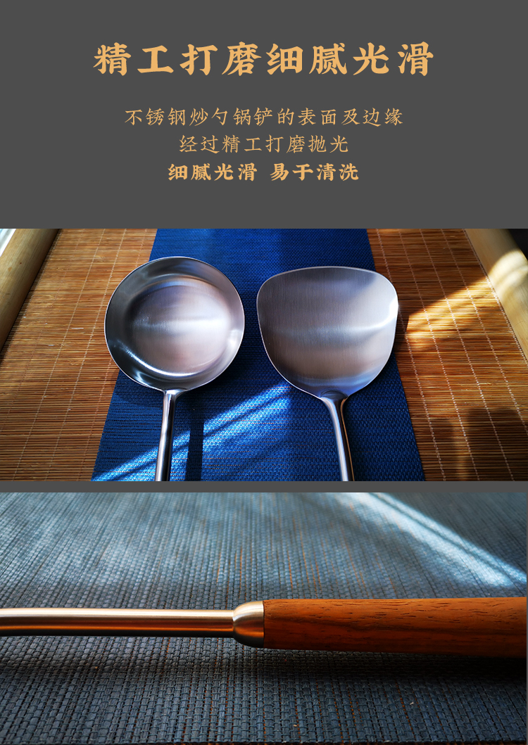 【中式炒勺锅铲】食品级304不锈钢炒勺 胡桃木防烫手柄 多规格可选