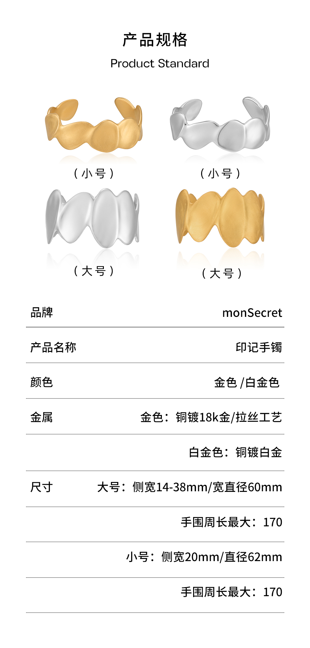 monSecret|PURE0401 印记窄版手镯【PURE】 [ 金 / 银 ]
