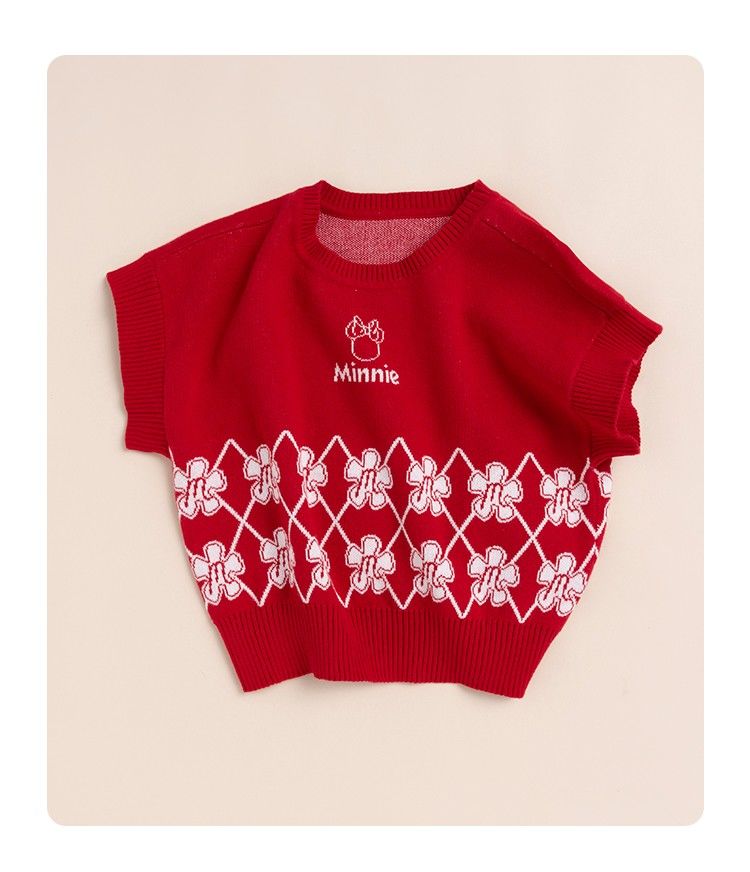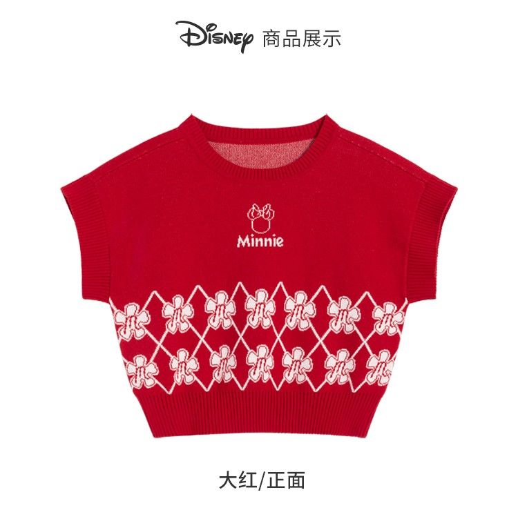迪士尼童装 宝宝马甲女童小童背心儿童春秋卡通保暖针织毛衣新年221S1677