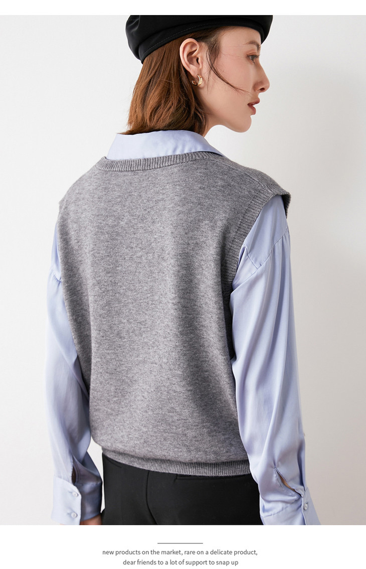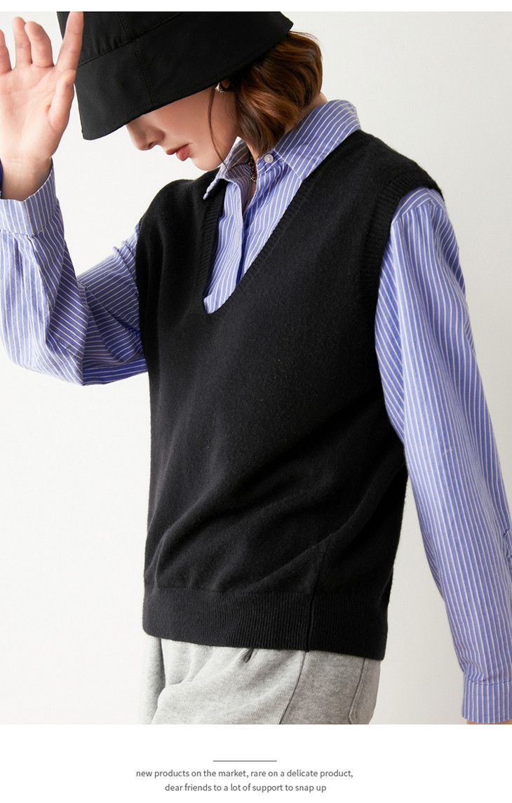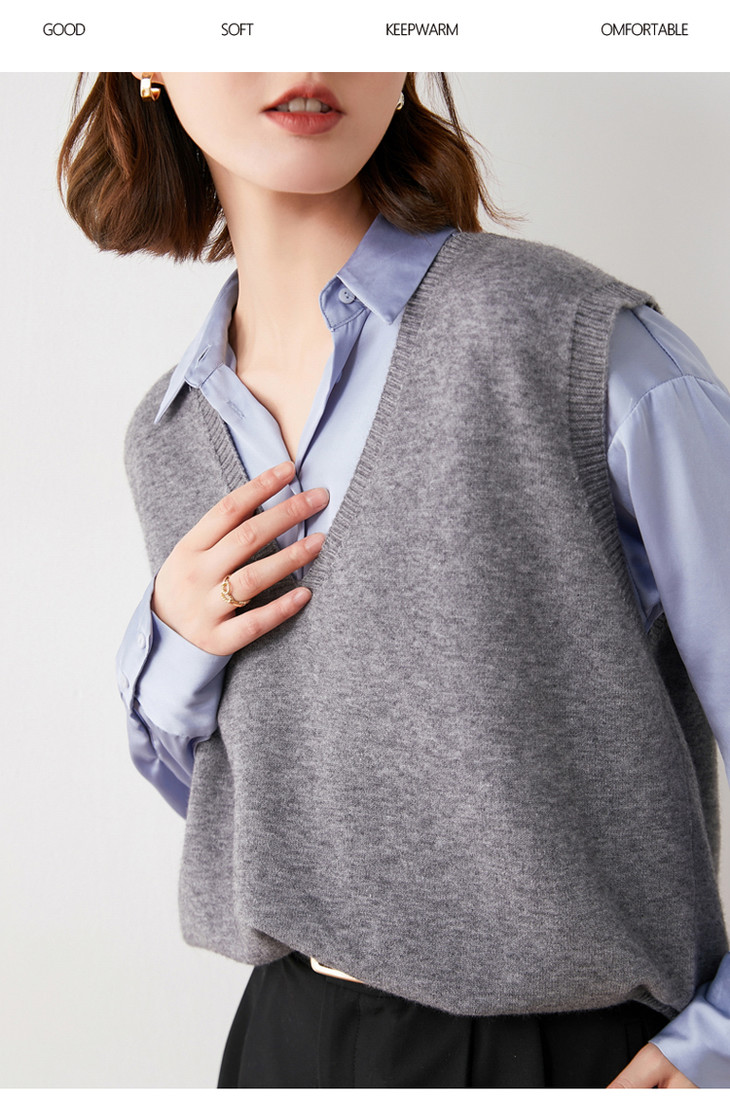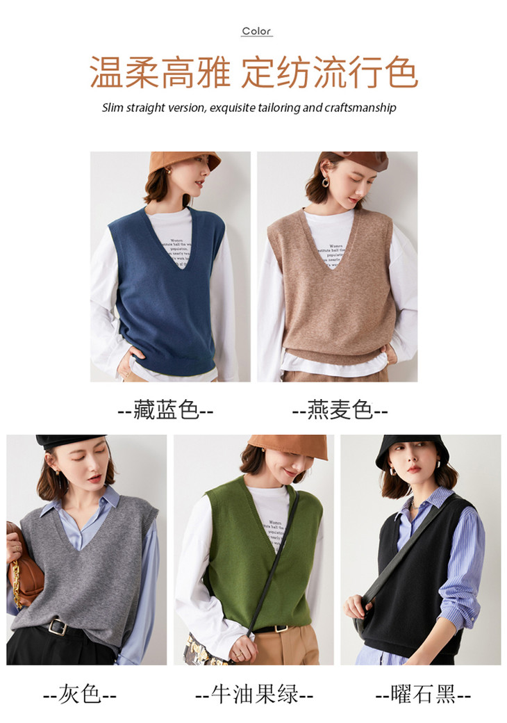 【闭眼入 时尚减龄】软糯细腻触感 轻盈百搭复古V领针织马甲 薄厚适宜 优雅知性 轻松通勤日常穿搭