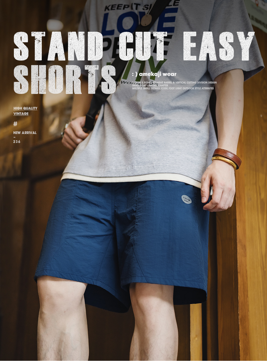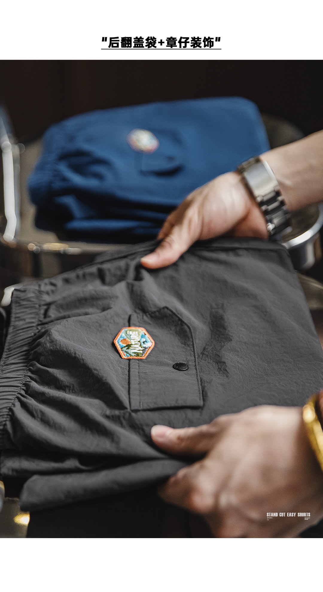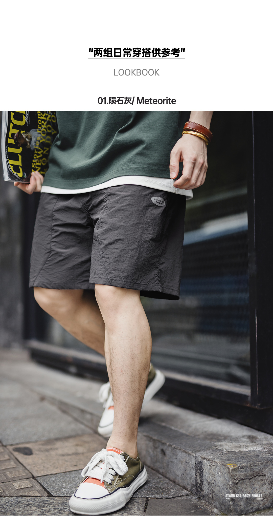 工装优选美式休闲尼龙速干褶皱短裤户外运动薄款直筒五分裤男夏季