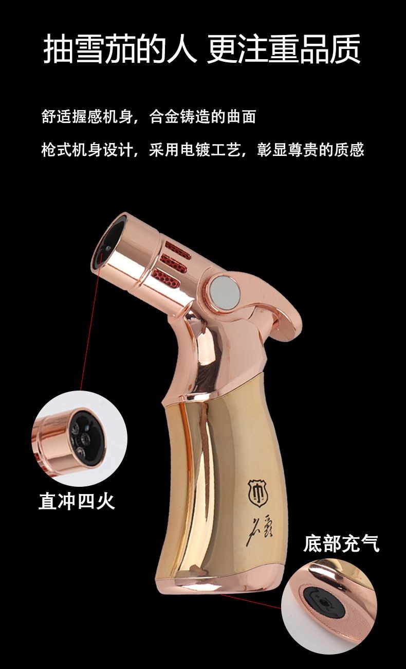 雪茄剪刀防风直冲雪茄打火机三合一套装雪茄烟灰缸三件套