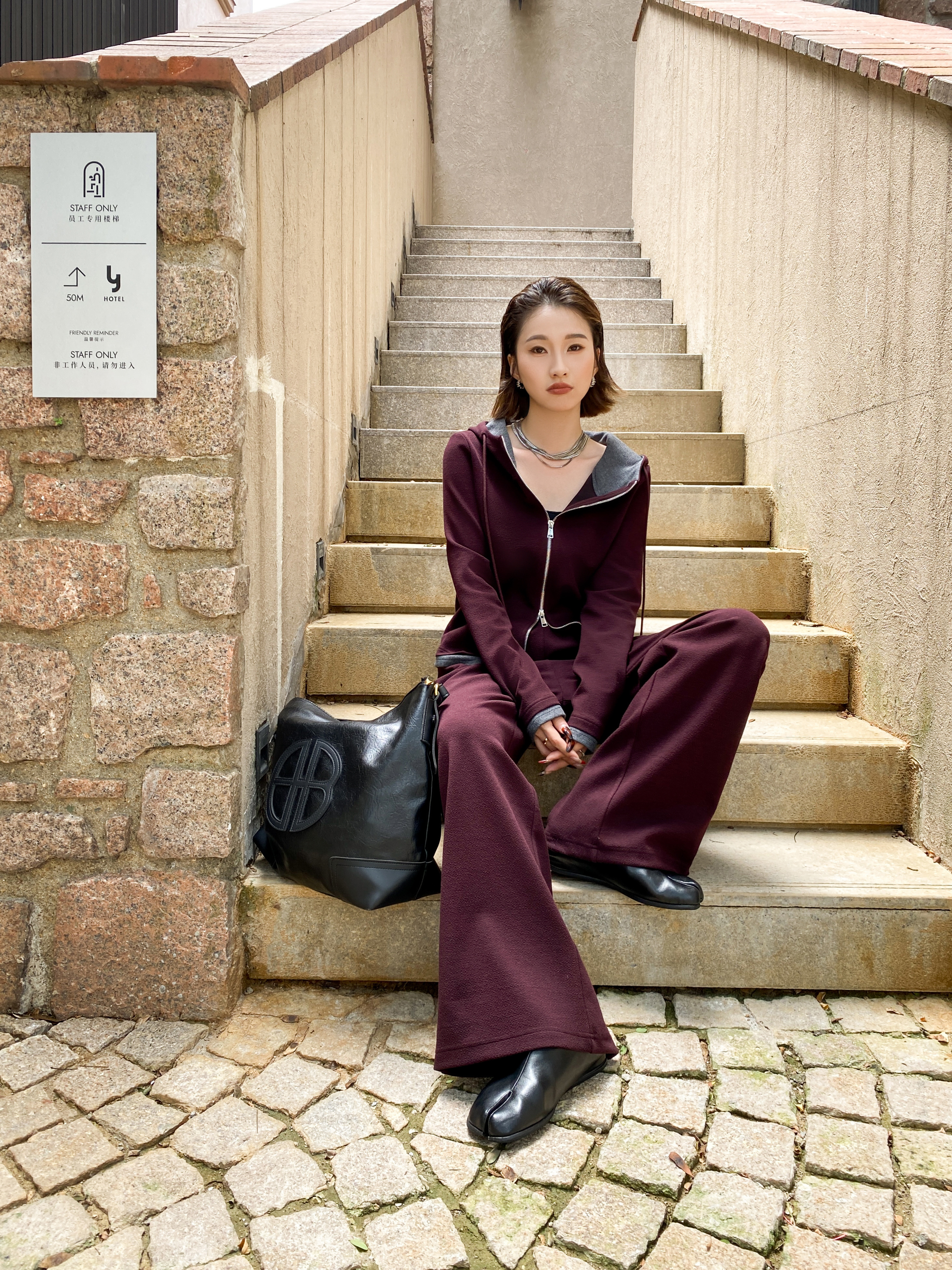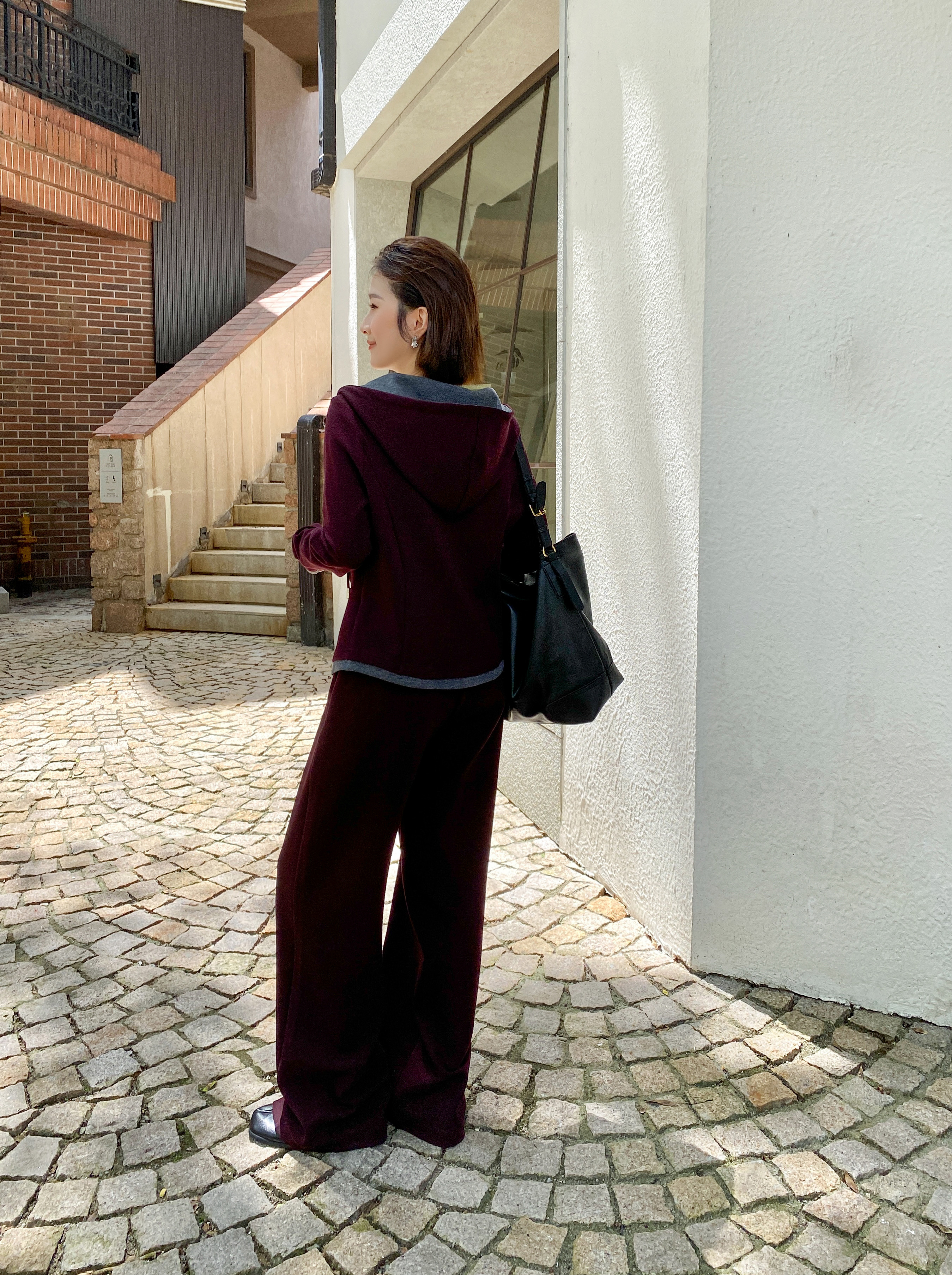 SZ3AL70_魏紫色_裤子_春秋_高腰松紧腰垂感针织阔腿_高级女装_BERNIEELEN 伯妮斯茵