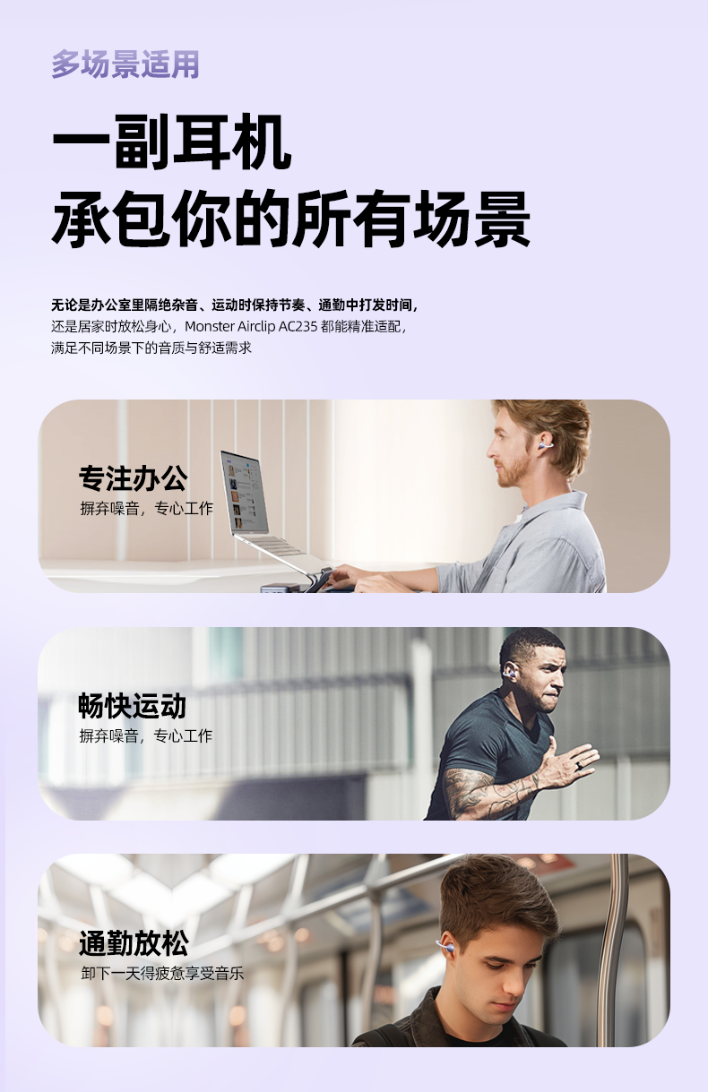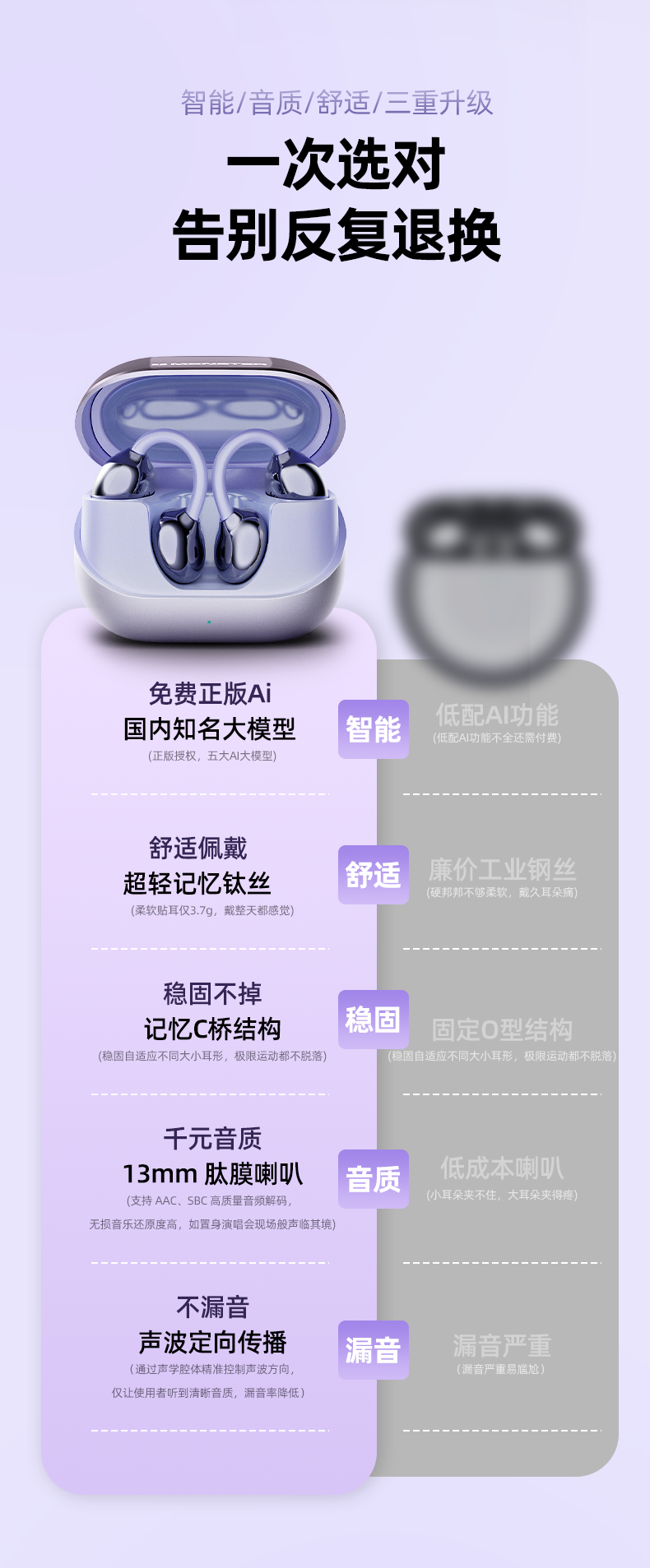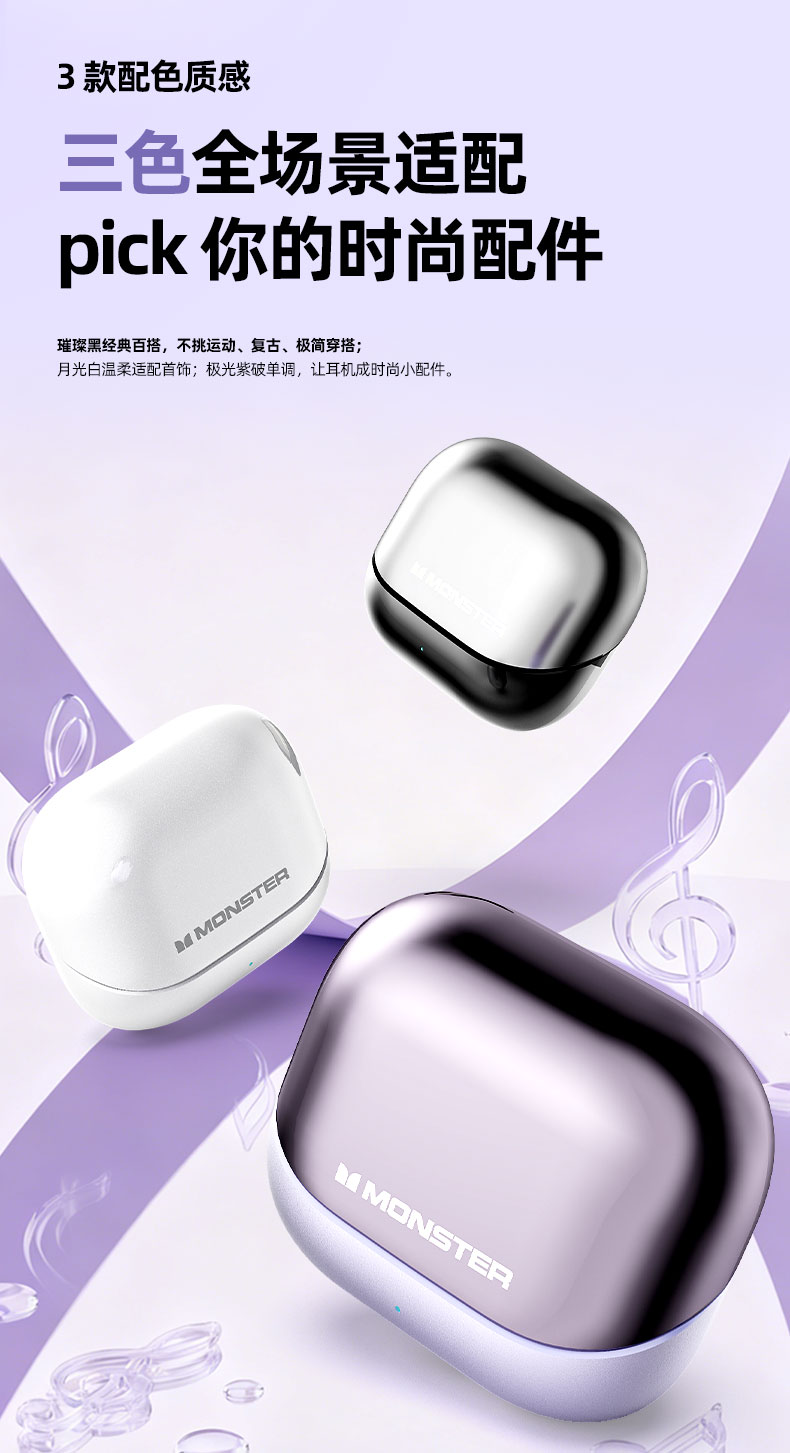 【品名】Monster魔声 新款夹耳式蓝牙耳机 基础款/AI款 AC235 【规格】 基础款/AI款:璀璨黑、月光白、极光紫 【产地】国内 【发货包装】独立包装 【发货地】广东 【发货快递】申通 【补邮费地区】新疆、西藏+6元/单 【发货时效】48-72小时,周末节假日顺延 |