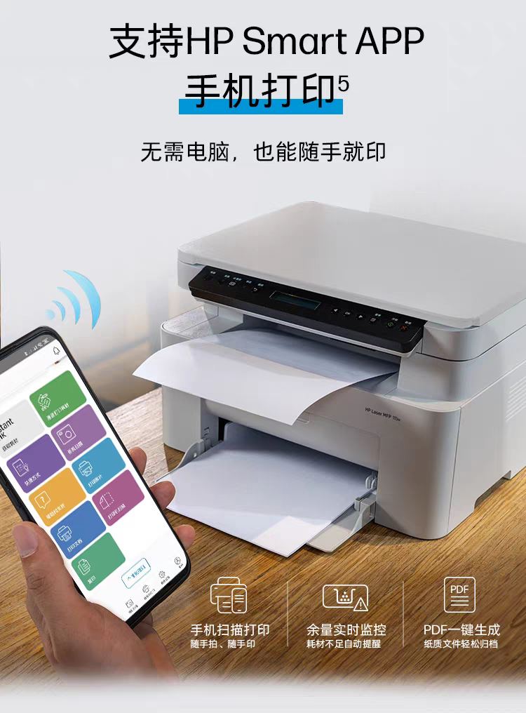 惠普105w 115w黑白激光手机可连接无线打印机一体机A4复印扫描小型家用家庭学生作业办公专用101w 111nw 105a