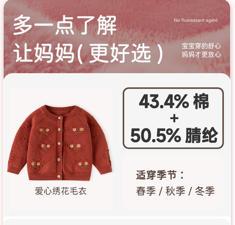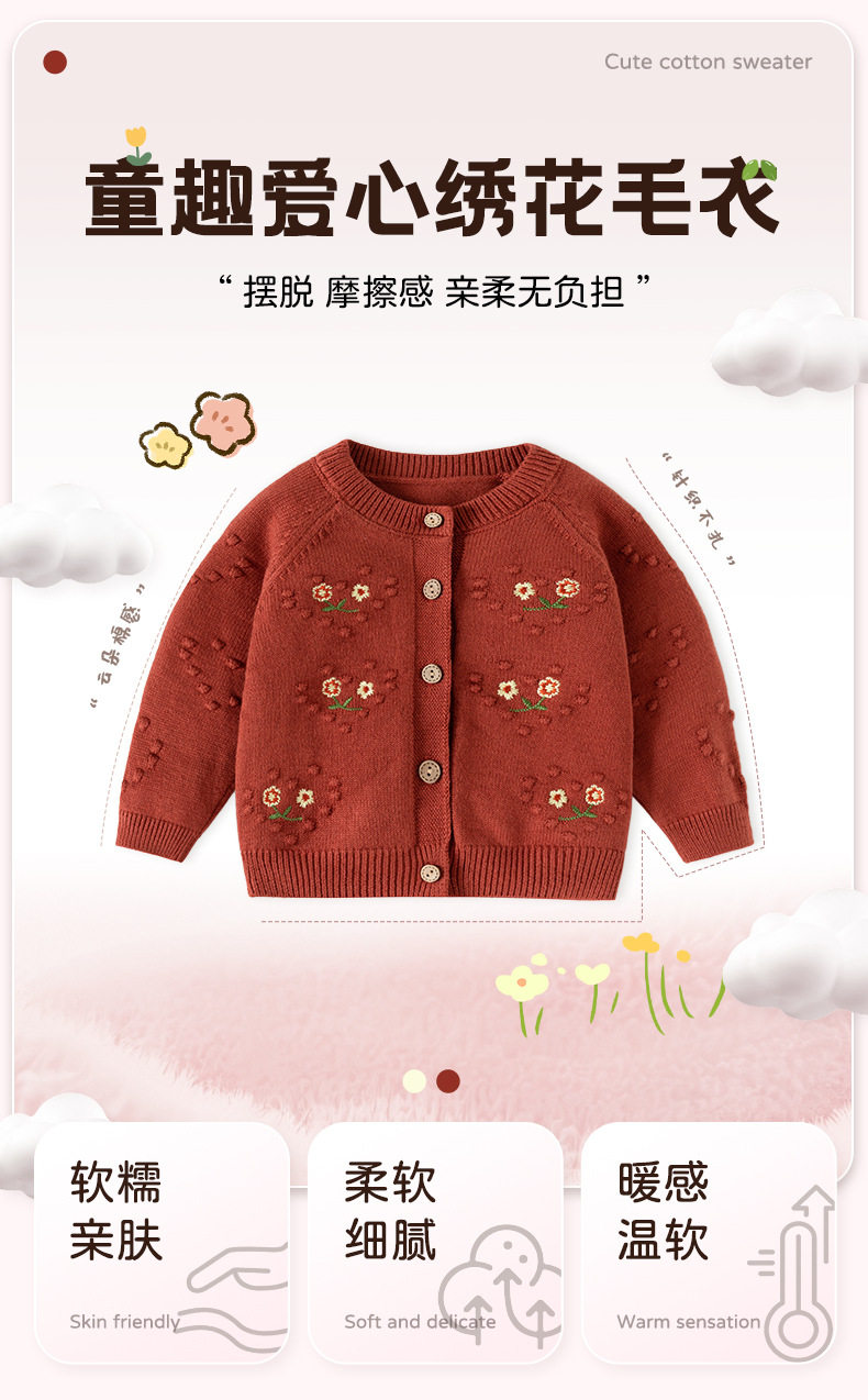 爱心绣花针织柔软女童毛衣开衫秋冬婴儿毛衣A类潮范韩版女童外套