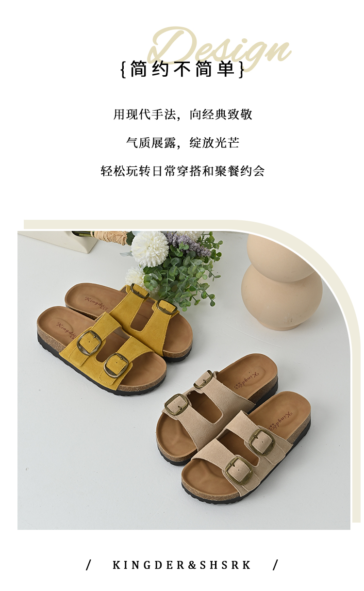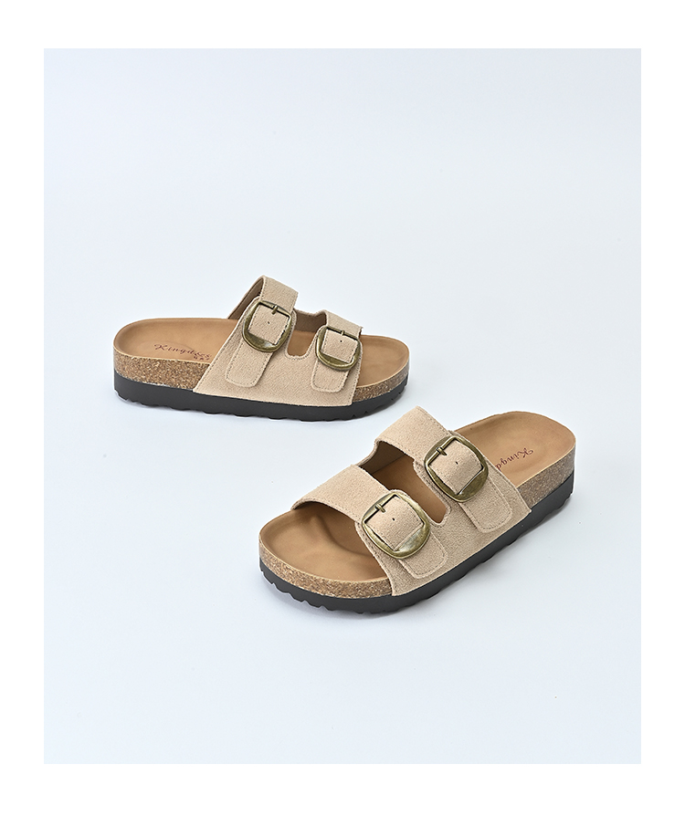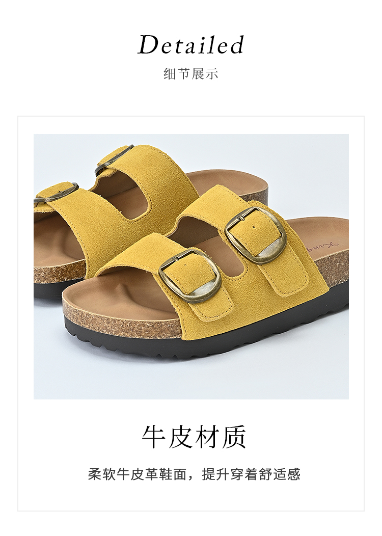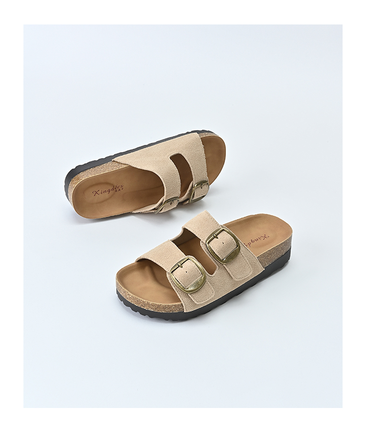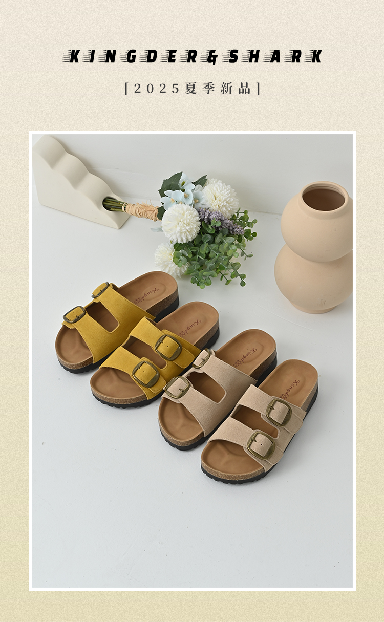 经典鲨2025夏季新款牛皮革露趾后空时尚内增高平底凉拖鞋女KW137-529011