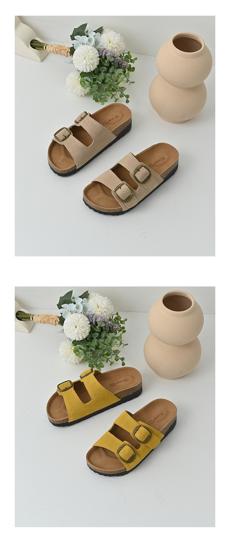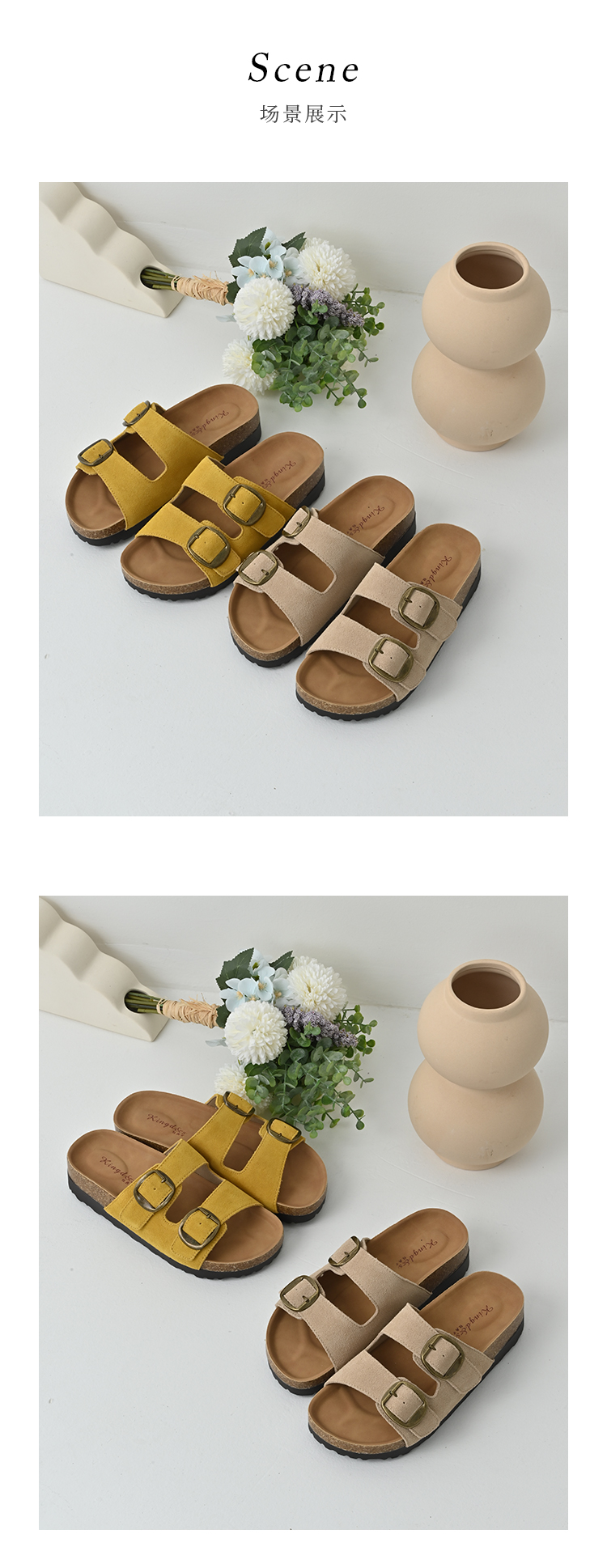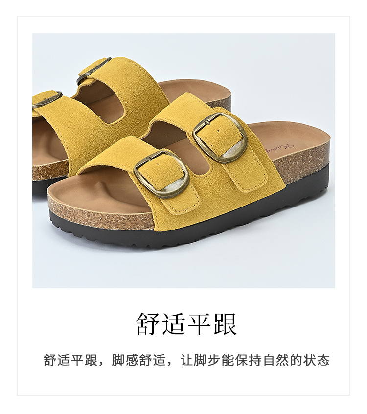 经典鲨2025夏季新款牛皮革露趾后空时尚内增高平底凉拖鞋女KW137-529011