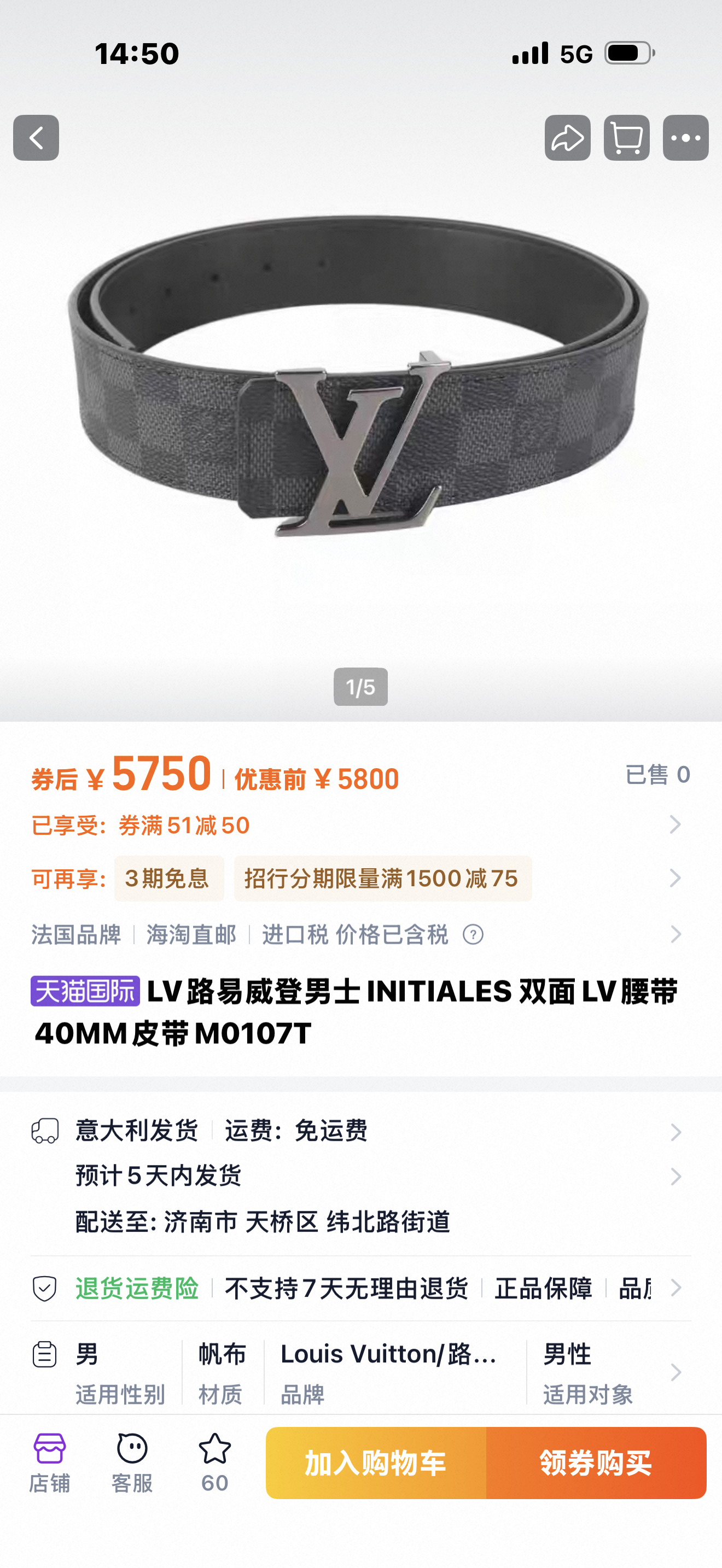 毒家深圳南油发350 数量只有200盒!LV INITIALES 双面40MM经典的男士双面腰带棋盘格压纹皮革皮带