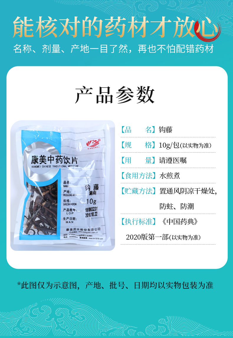 钩藤/双钩藤 康美中药饮片 独立小包装10g起