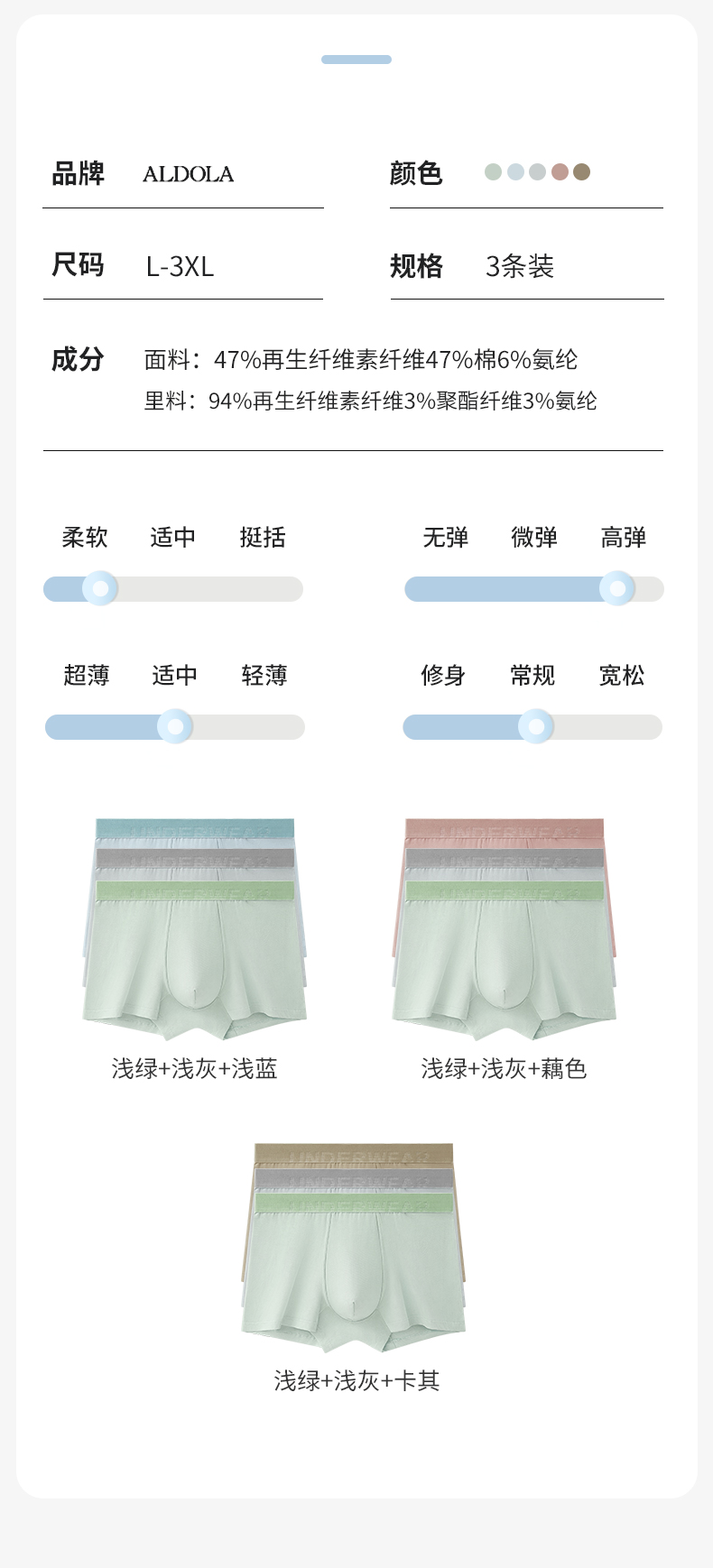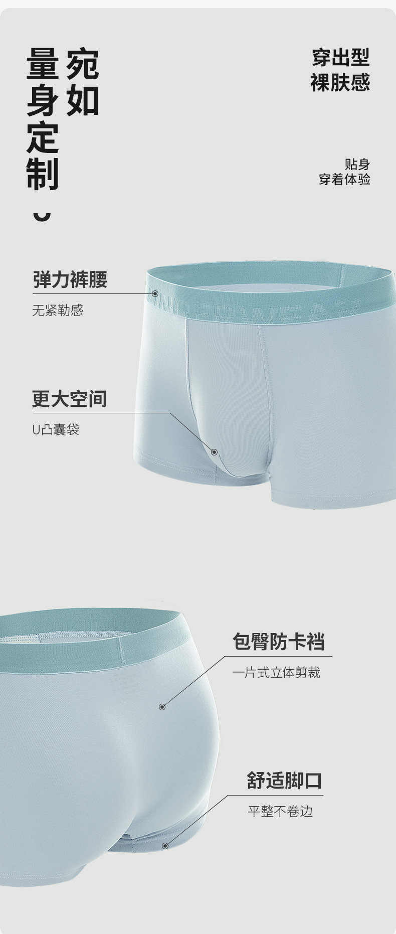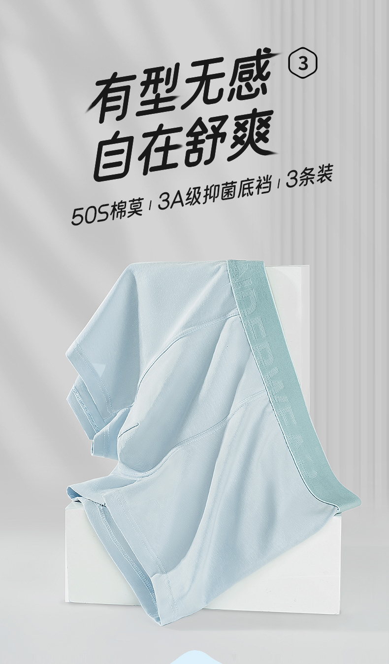 雅黛丽男士内裤无痕贴合3A抗菌底裆短裤50S棉莫亲肤平角裤短裤衩