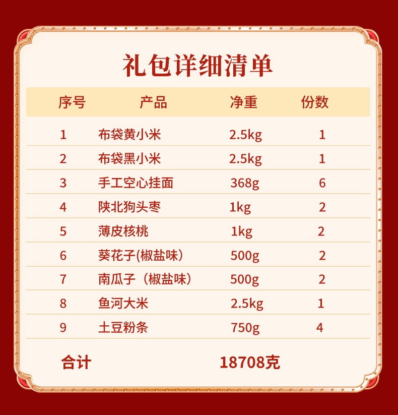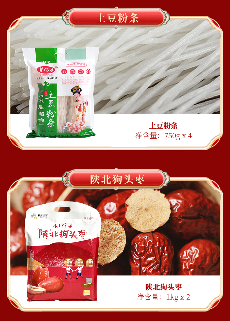 【陕北特产组合】桃花峁小米红枣核桃粉条600元组合