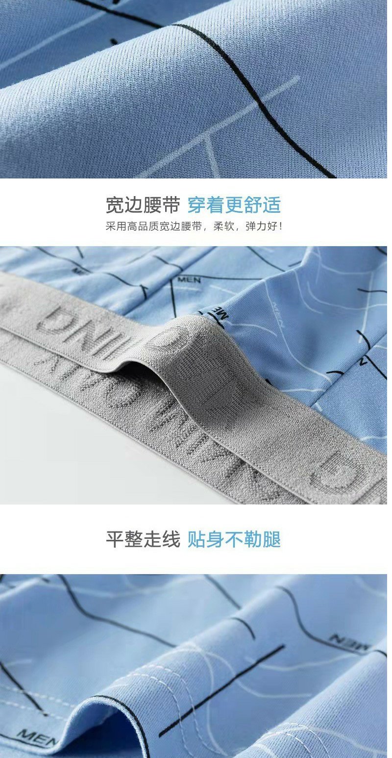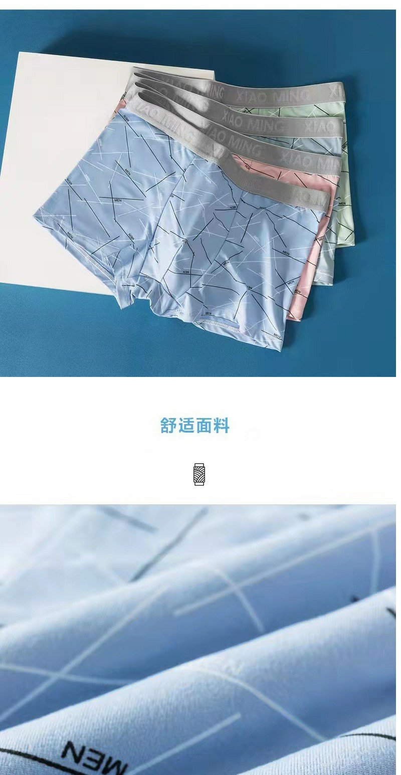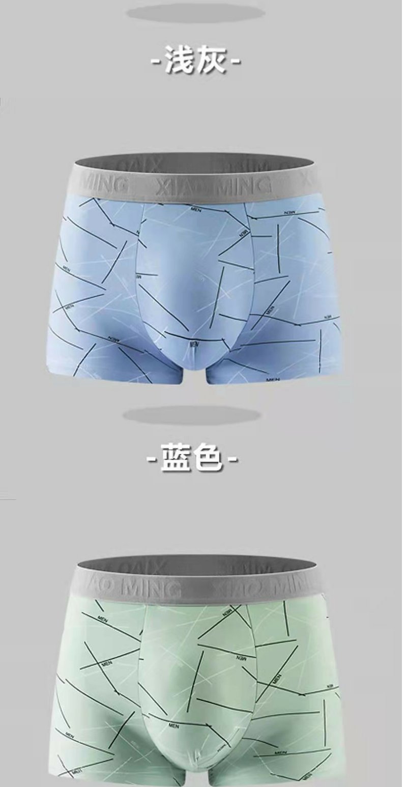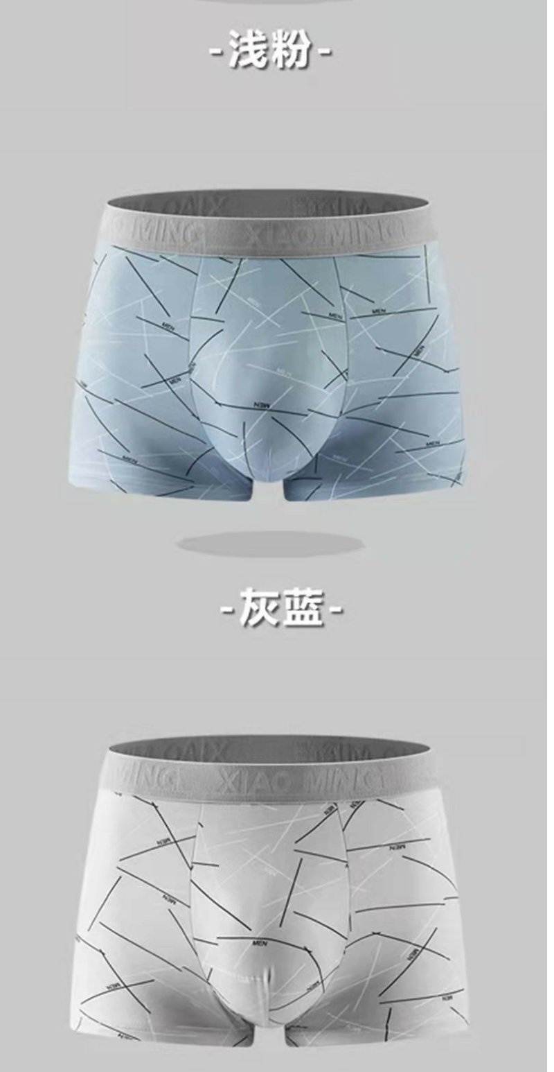 牛奶丝撞色男士内裤中腰印花透气内裆男士平角裤 舒适亲肤四角裤1条