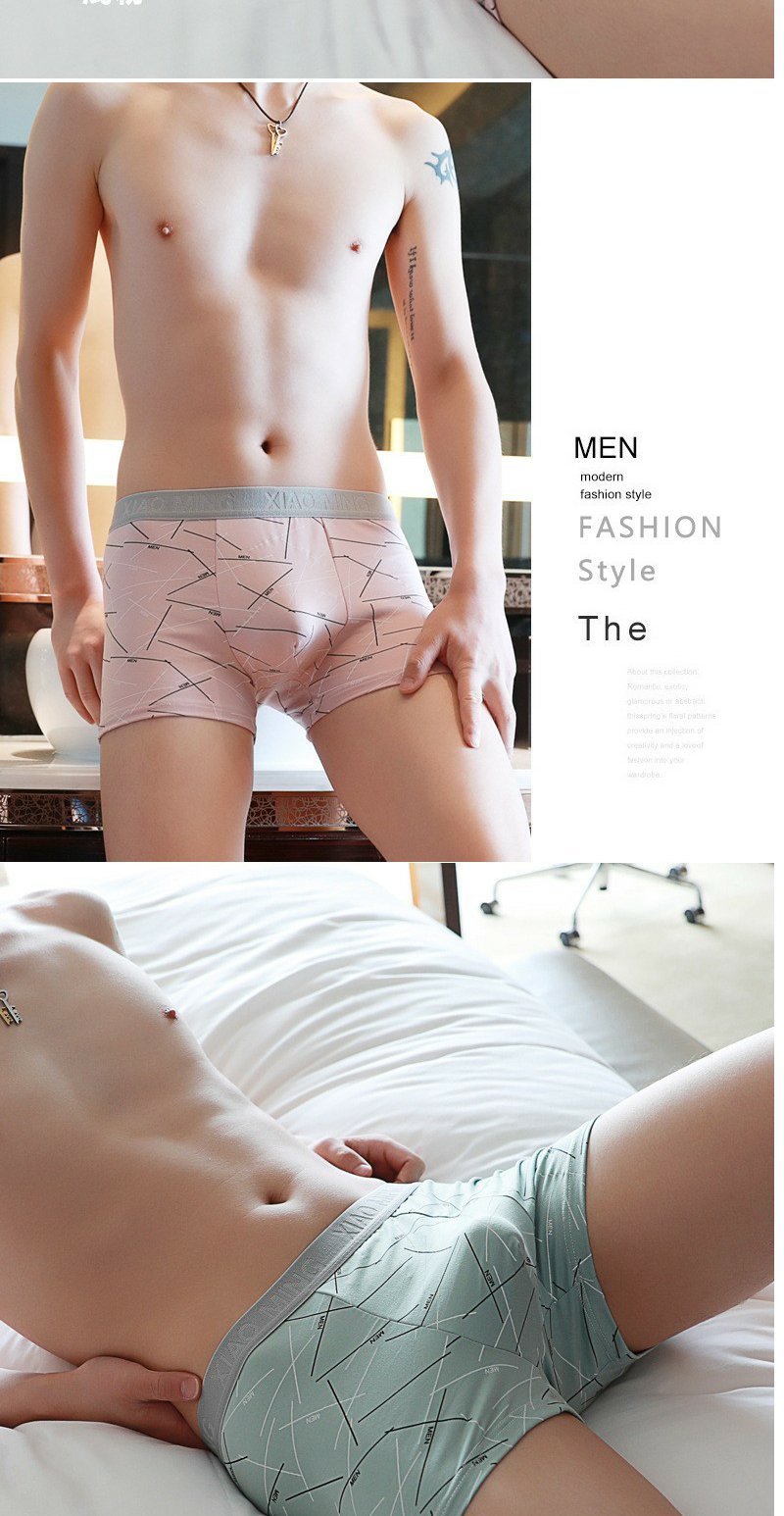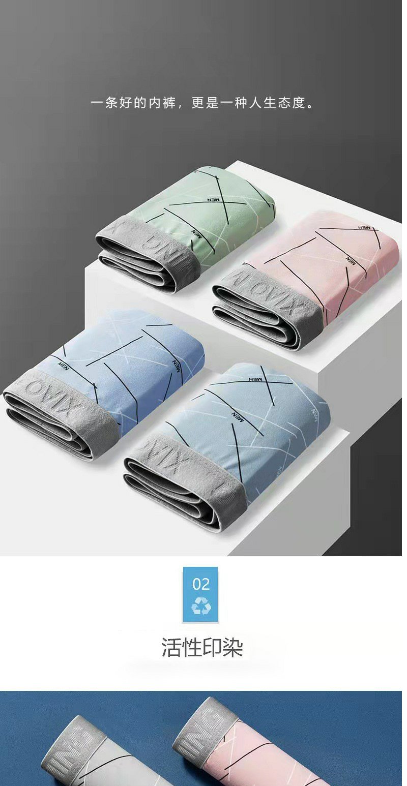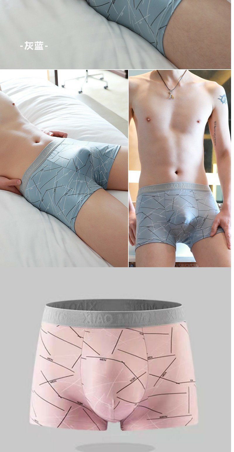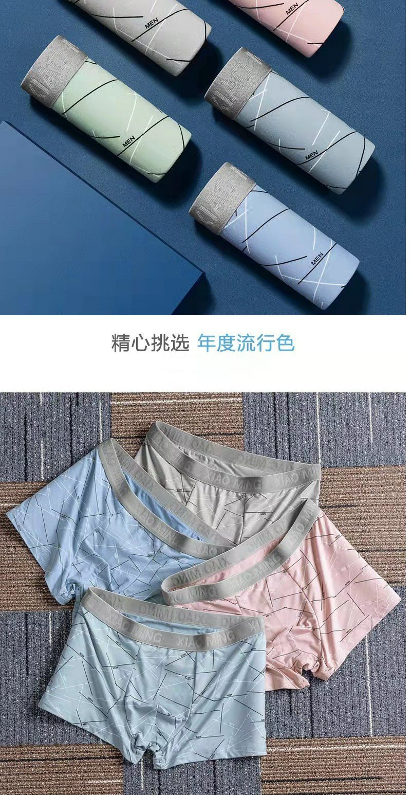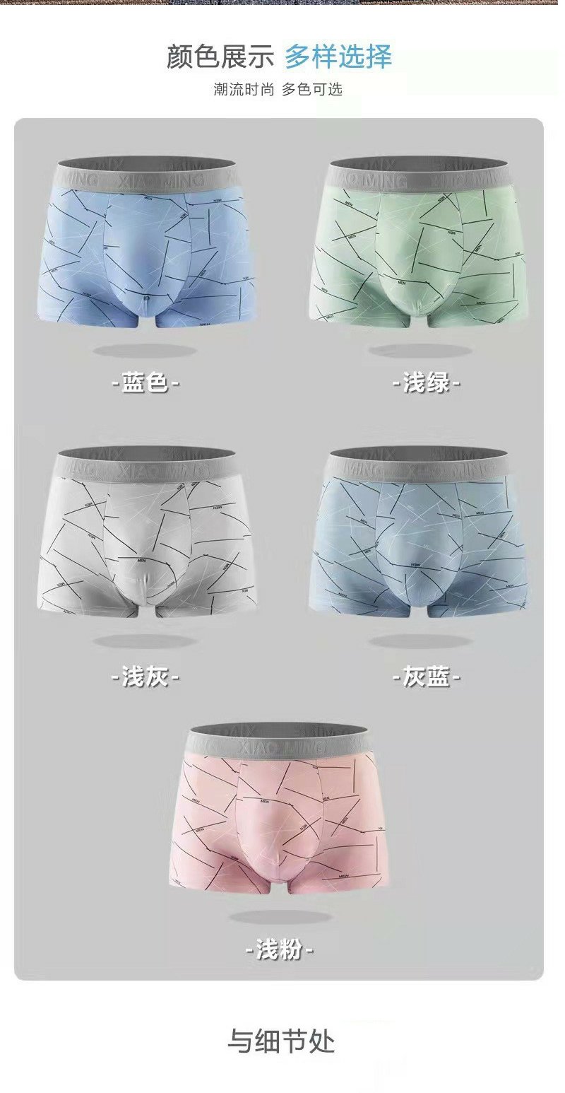 牛奶丝撞色男士内裤中腰印花透气内裆男士平角裤 舒适亲肤四角裤1条