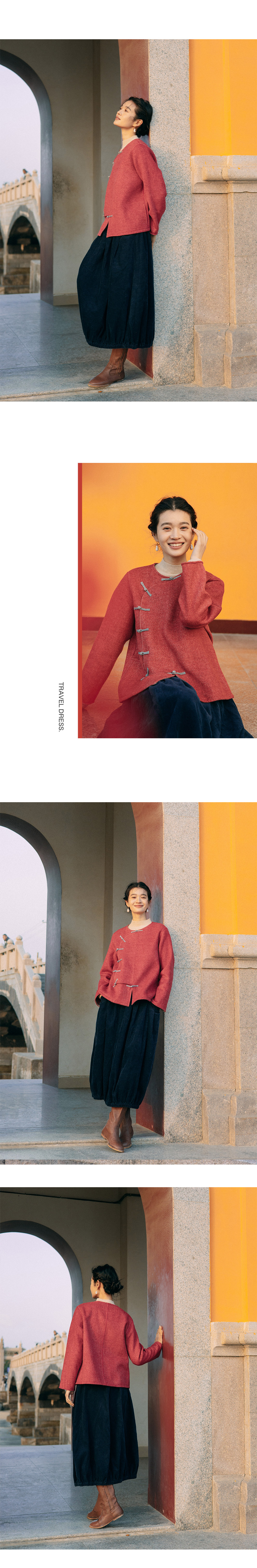 以天然亚麻为载体,融合热烈色彩与自在剪裁为身在城市、心怀远方的女性提供兼具美学与舒适的旅行着装
