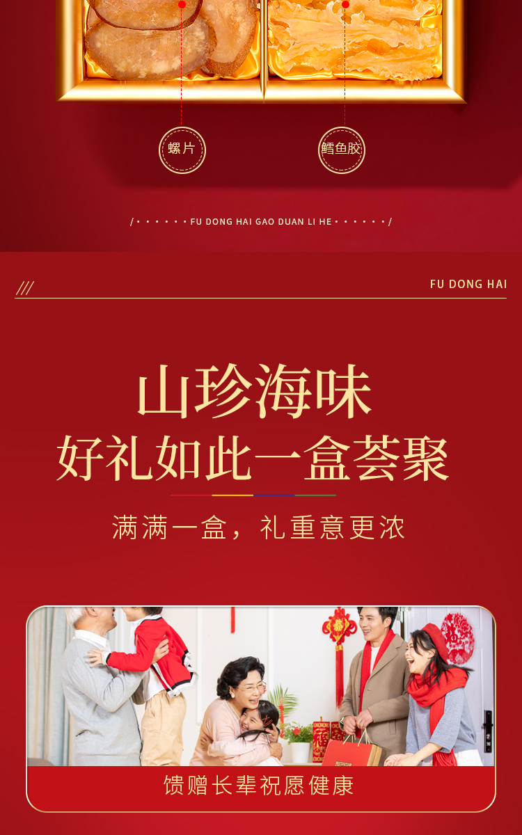 福东海 山珍海味礼盒535克 鲍鱼螺片鳕鱼胶海参鳐翅人参六拼海味干货煲汤材料 企业团购 送礼送长辈 送礼佳品山珍海味礼盒