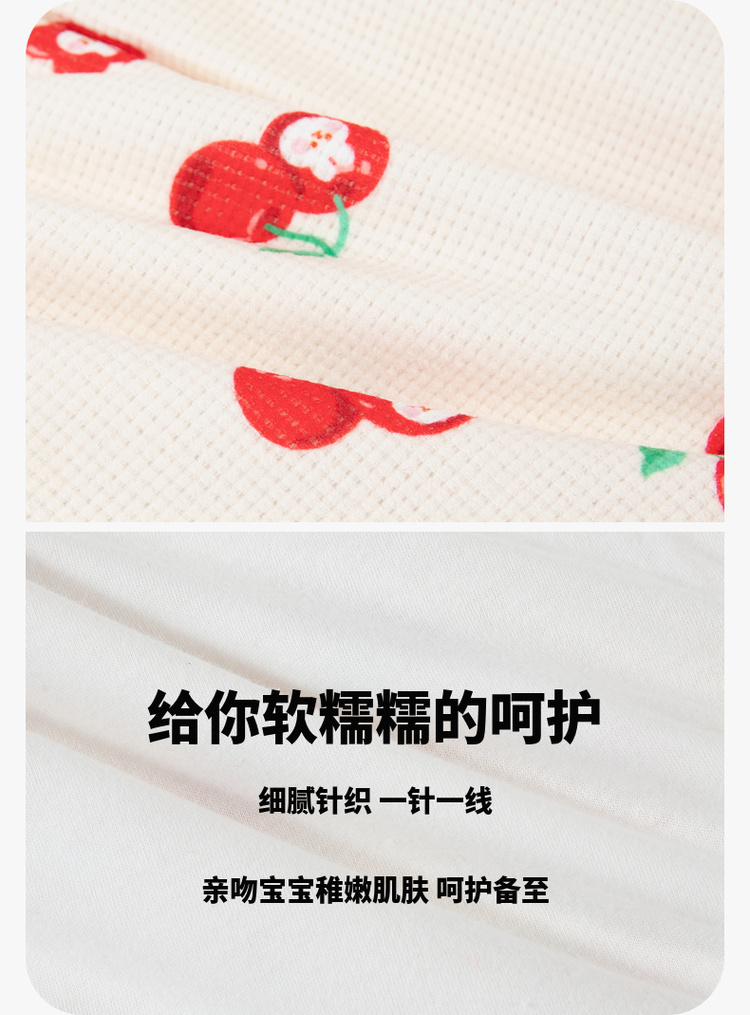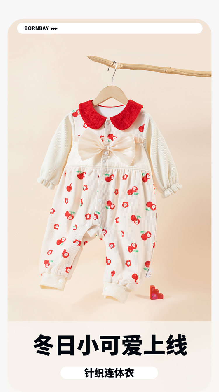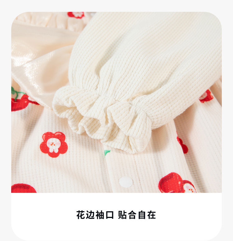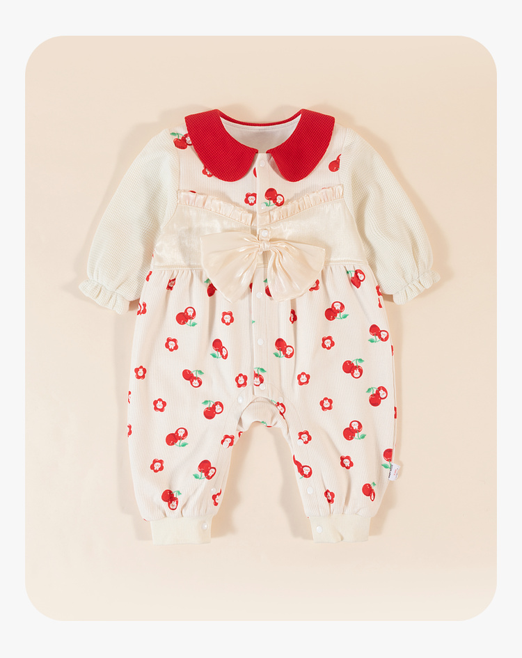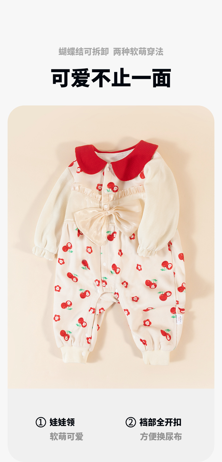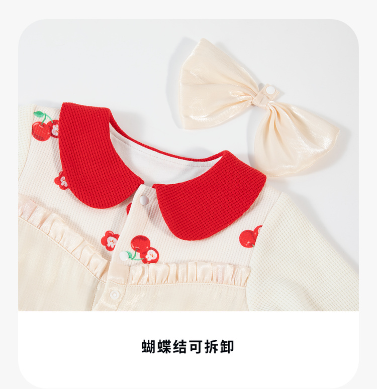 贝贝怡童装婴儿针织前开连体衣女宝宝樱桃印花哈衣春秋款宝宝上衣ZB3CL003