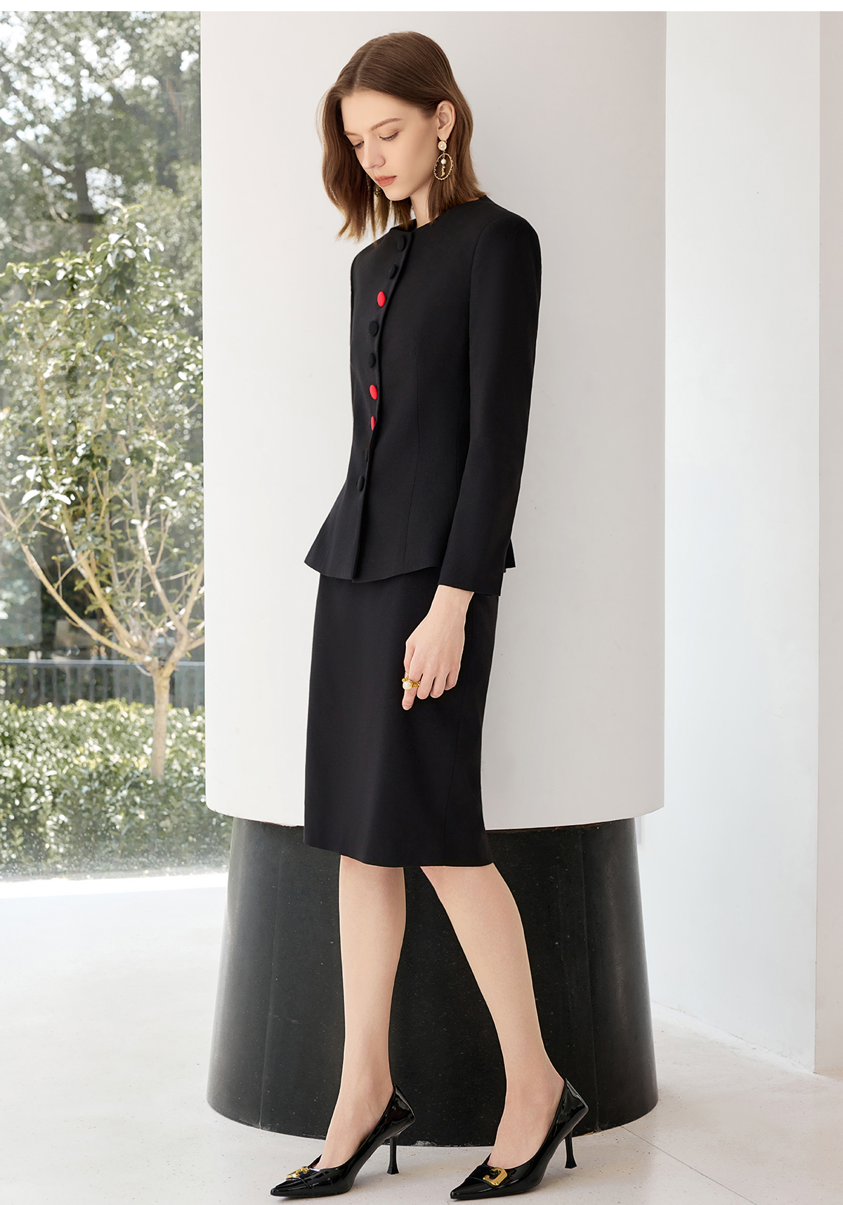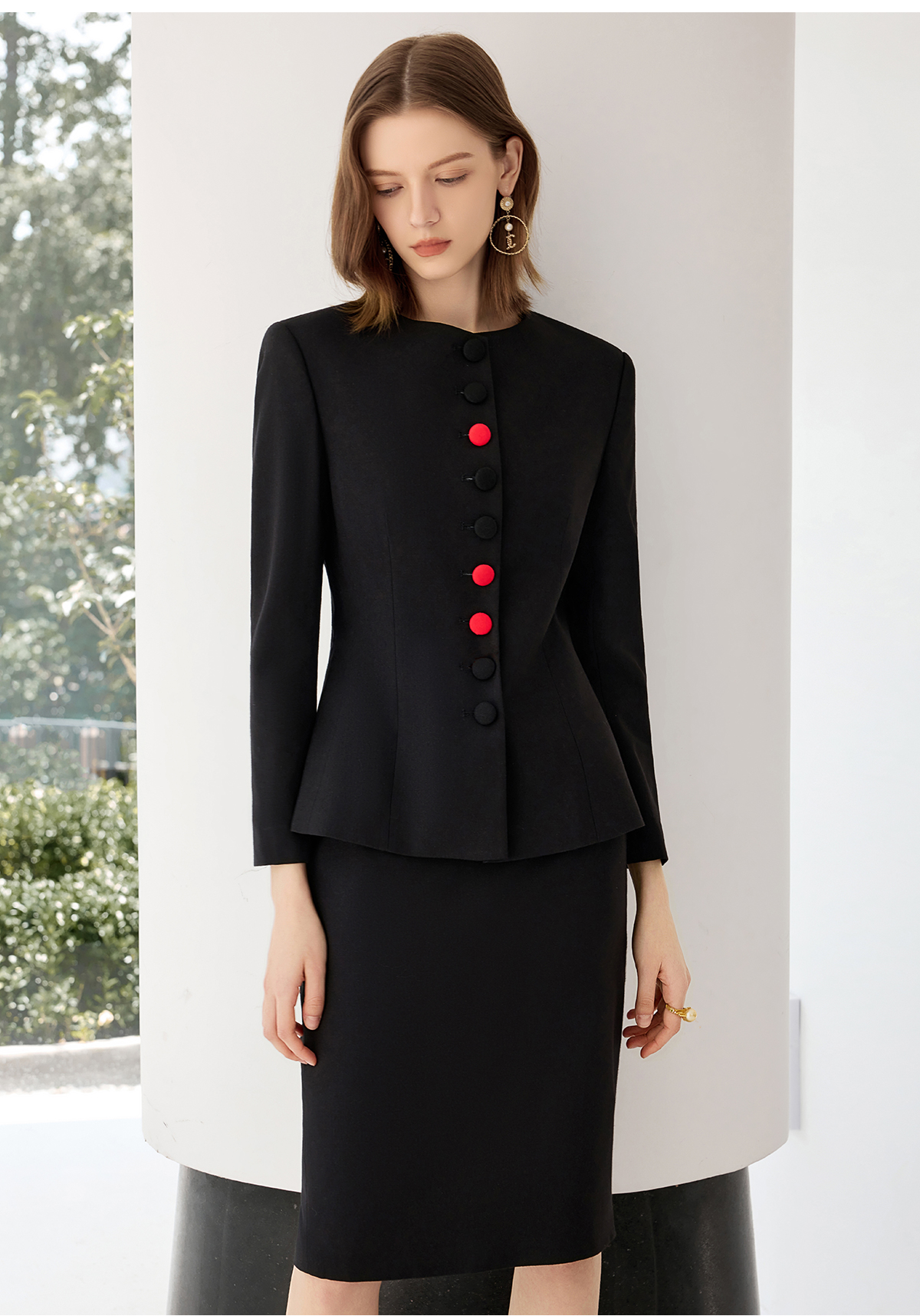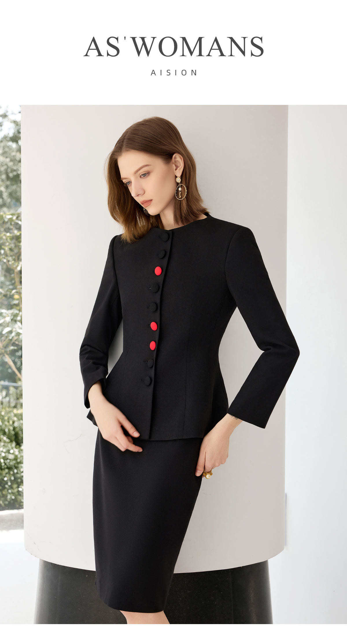 艾尚臣黑色西装套裙女秋上班通勤穿搭套装高端职业气质案场工作服