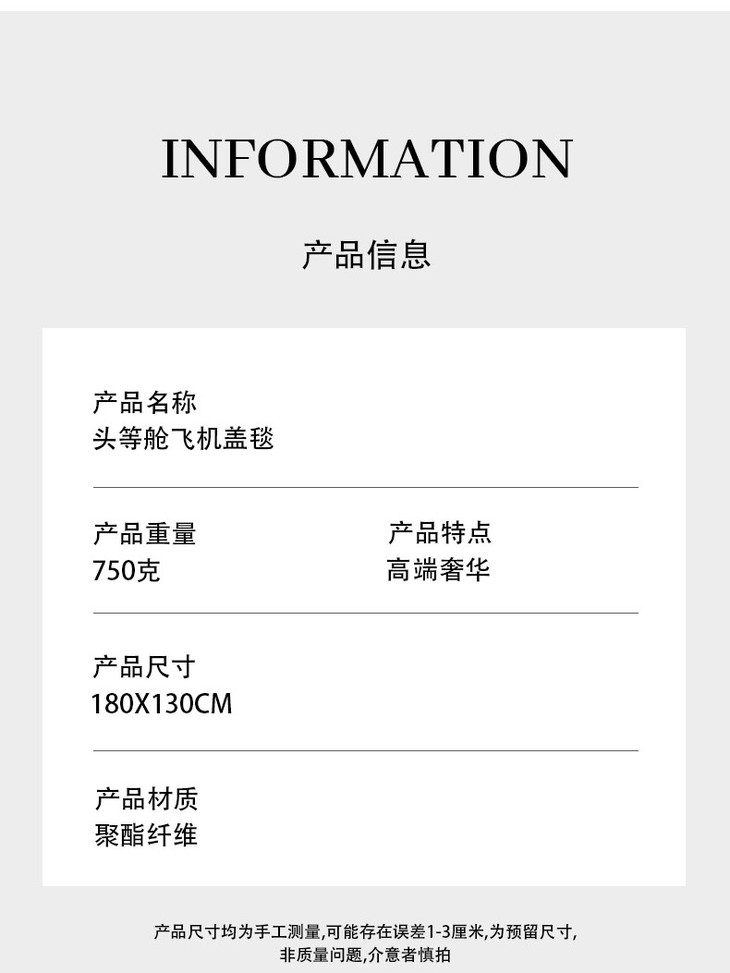 坐飞机要过毯子的,应该对这种材质印象深刻,虽然不厚,但不会飘飘的,很贴合!天热时披披防止空调冷风,天冷时裹裹全身保暖,铺床上放沙发,都有着恰到好处的舒适!突然降温时,当披肩出门也是毫无违和感,真正的一物多用!折叠后体积小巧,非常方便携带和收纳,一年四季都可,给家人也安排上!