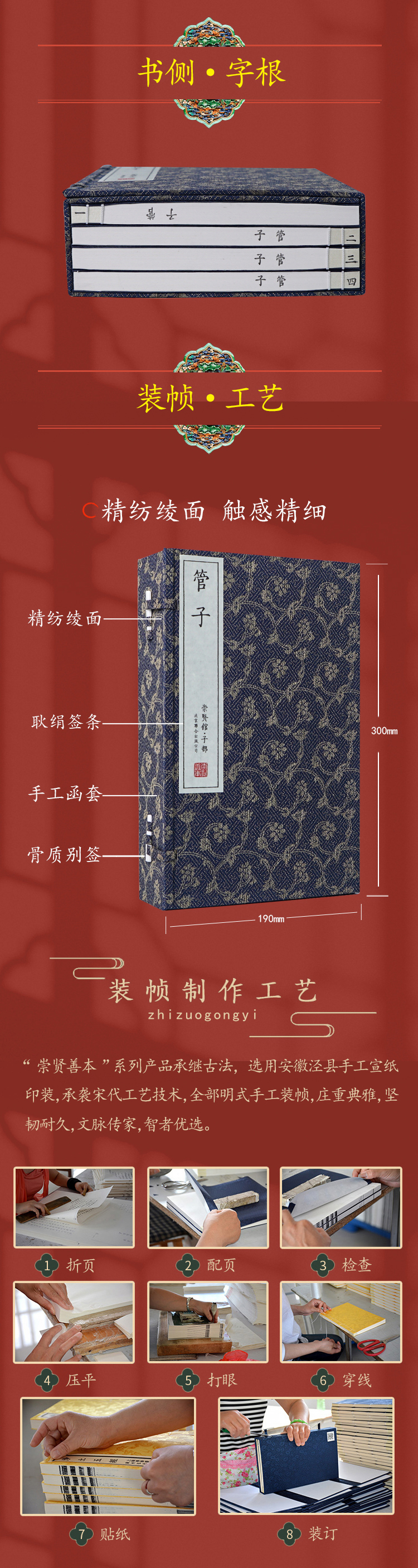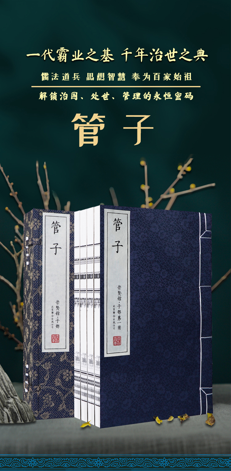 崇贤馆藏书 宣纸—管子(一函四册)手工宣纸线装繁体竖排