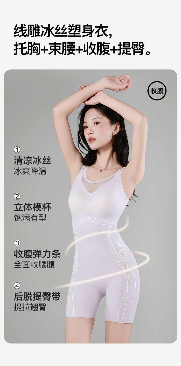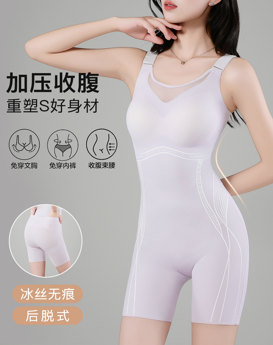 春夏免穿文胸无痕冰丝收腹后脱式连体束身衣女细腰翘臀轻薄透气S05凉感收腹塑身衣