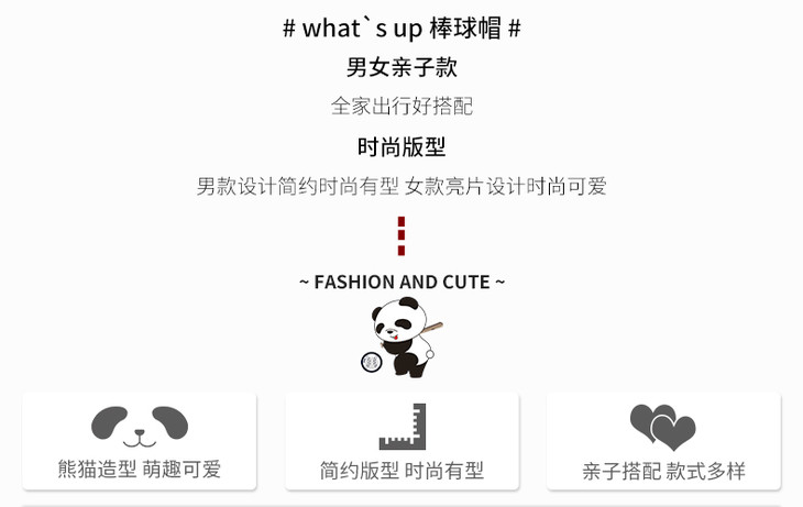 熊猫屋PANDAHOUSE 棒球帽-what's up 亲子款