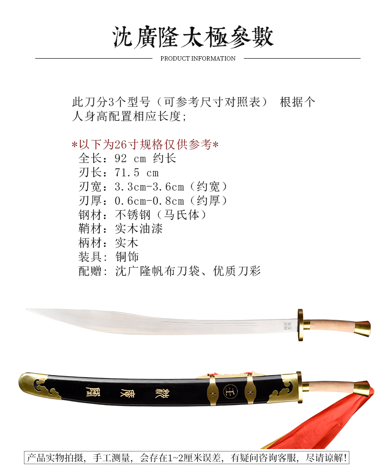 新三皇太极刀 标准武术太极刀单刀 沈广隆剑铺 龙泉太极刀 sgl-9005 未开刃