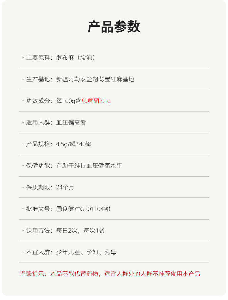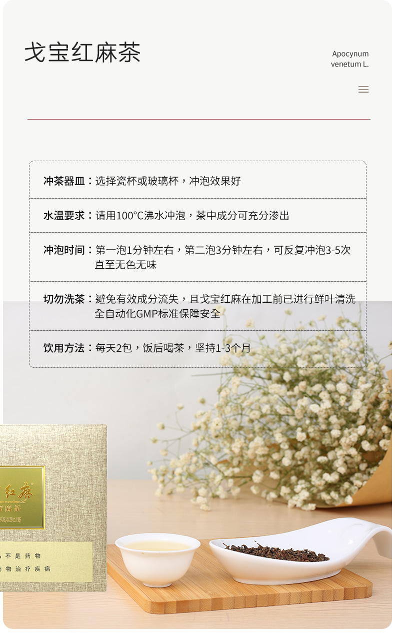 【新疆阿勒泰原产地】戈宝红麻罗布麻原叶茶适合血压偏高者中老年养生茶礼盒4.5g*60袋