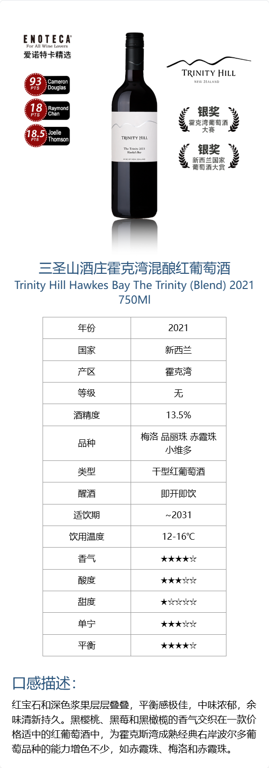 【波尔多风格混酿】Trinity Hill Hawkes Bay The Trinity Blend 2021 750Ml