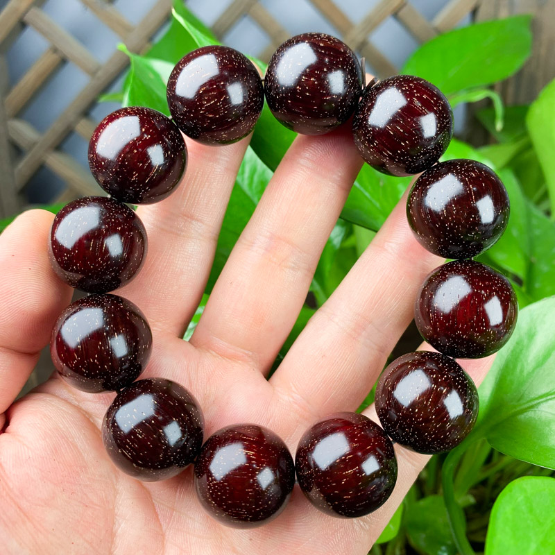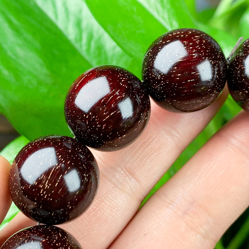 小叶紫檀4.5星的爆满金星手串,爆金星是金星中的极品。这款手串的每一颗珠子上都是满满的星,看起来非常绚烂。4.5星的料质,底色干净。每颗基本都被金星填满,整体密度非常高,这种料质的手串可以说是可遇不可求了!