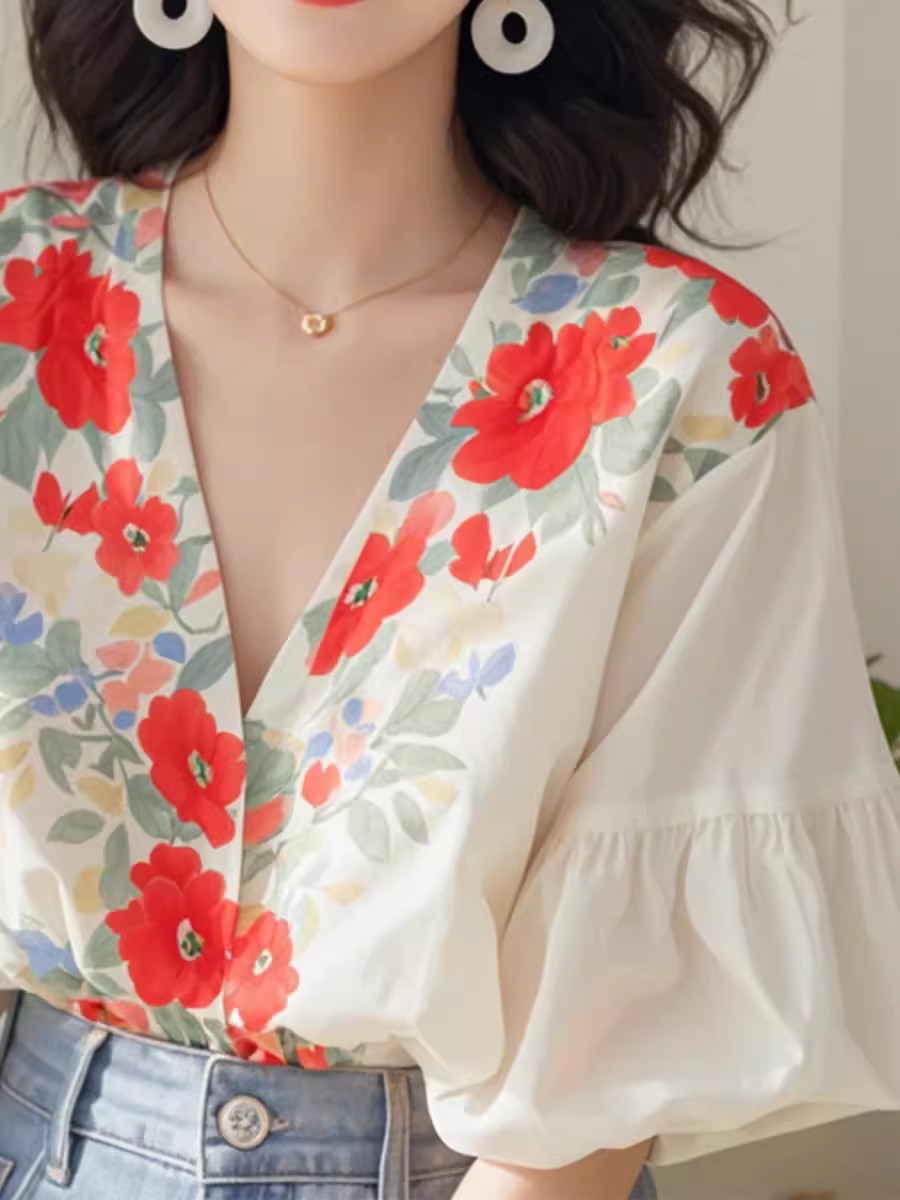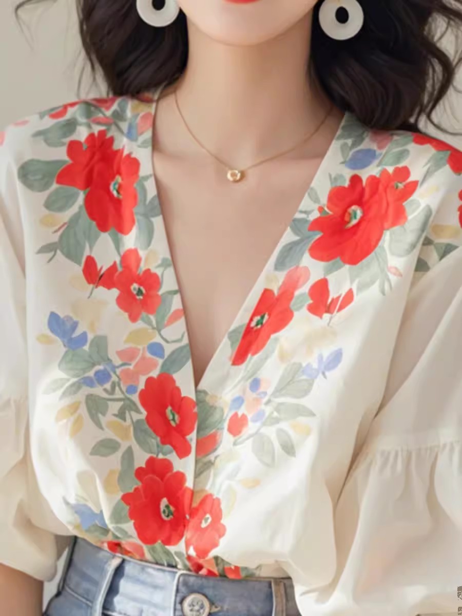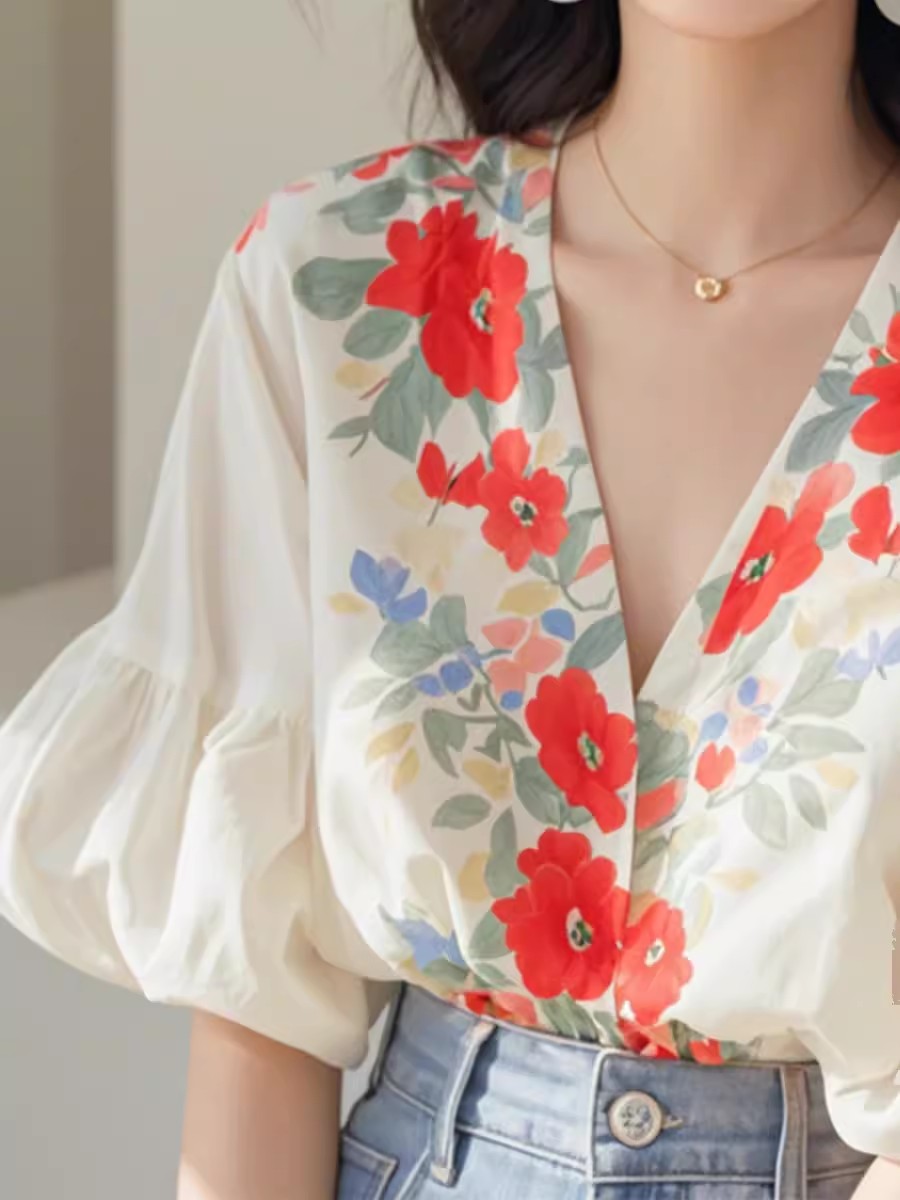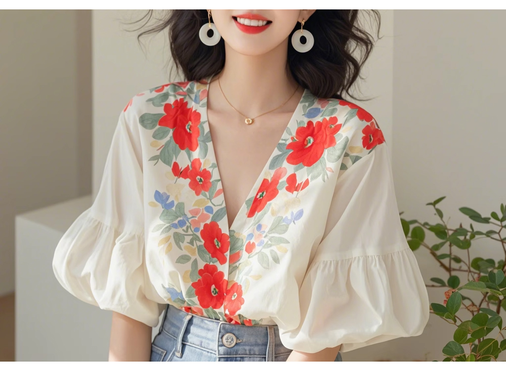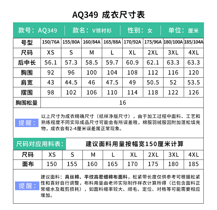 裁缝学苑AQ349小衫夏季法式V领灯笼袖衬衫纸样女装上衣衬衣样板