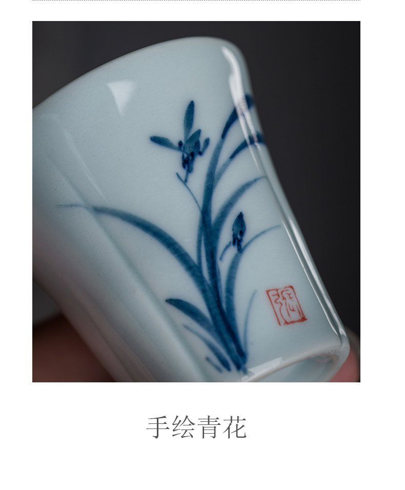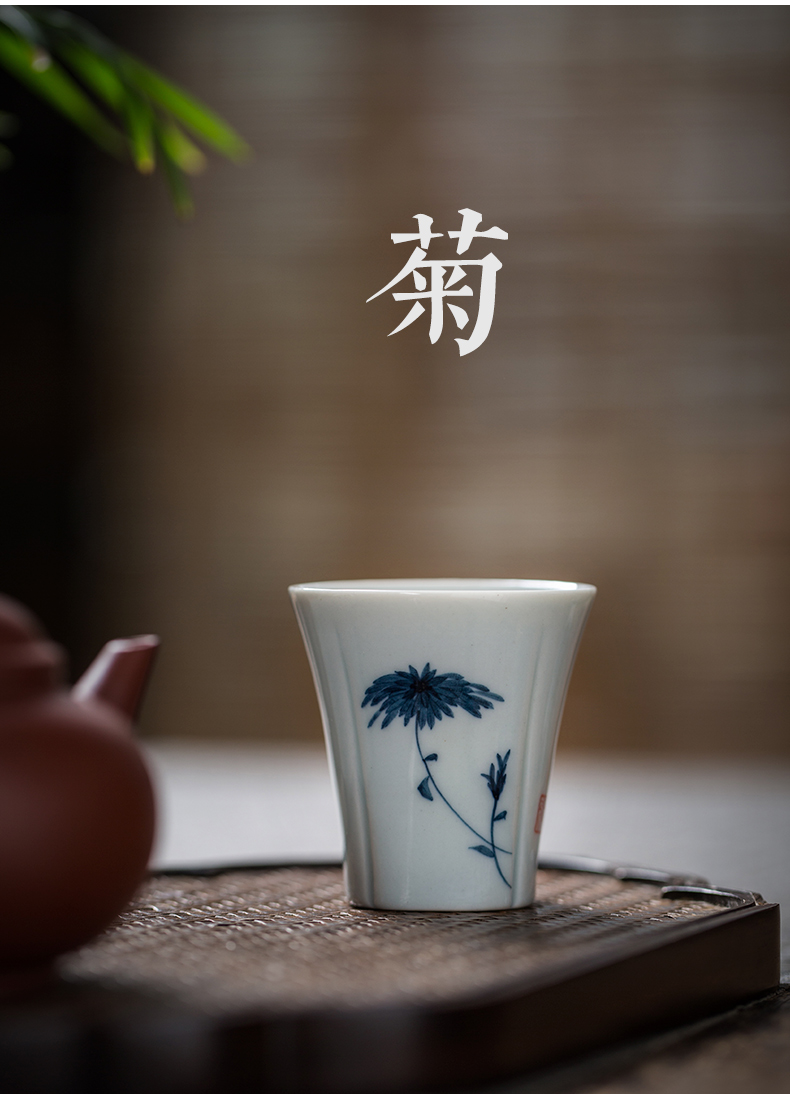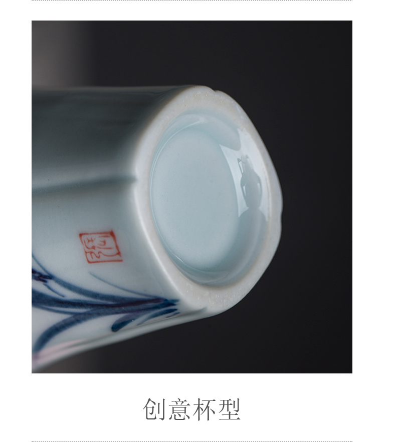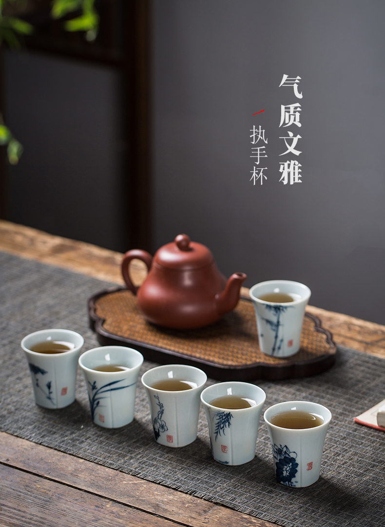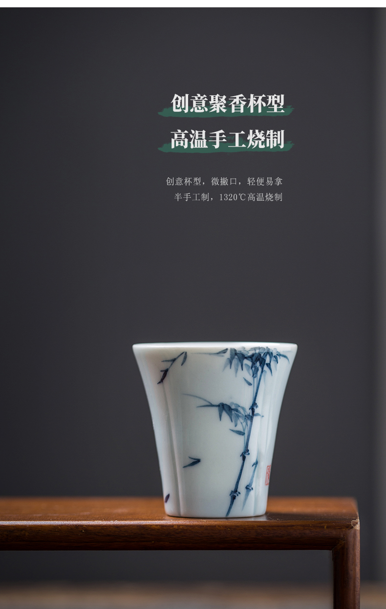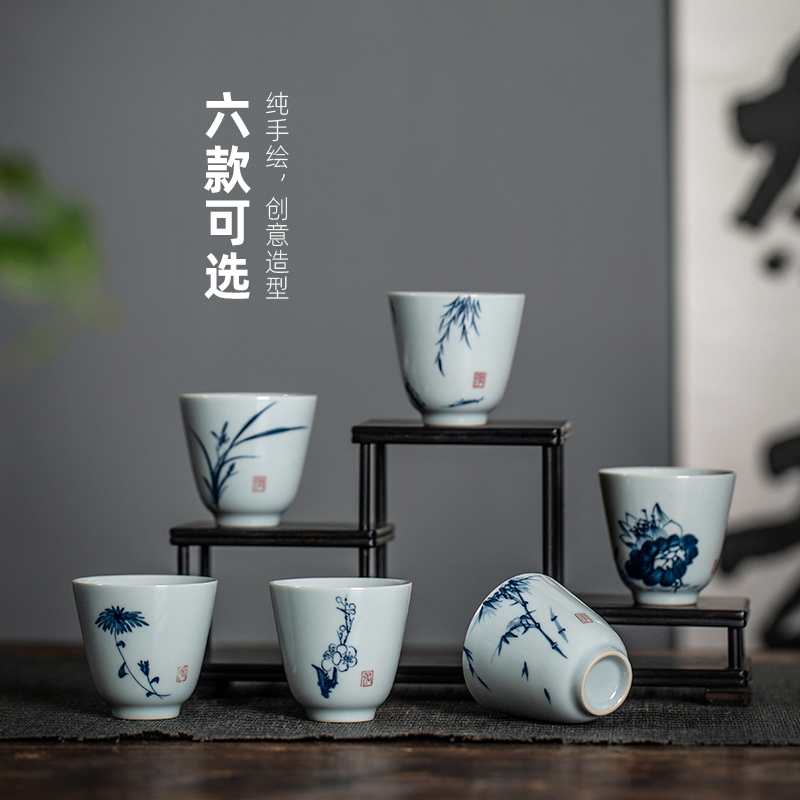 永利汇青花绘画陶瓷茶杯小号功夫茶具单个茶道品茗杯主人杯日式