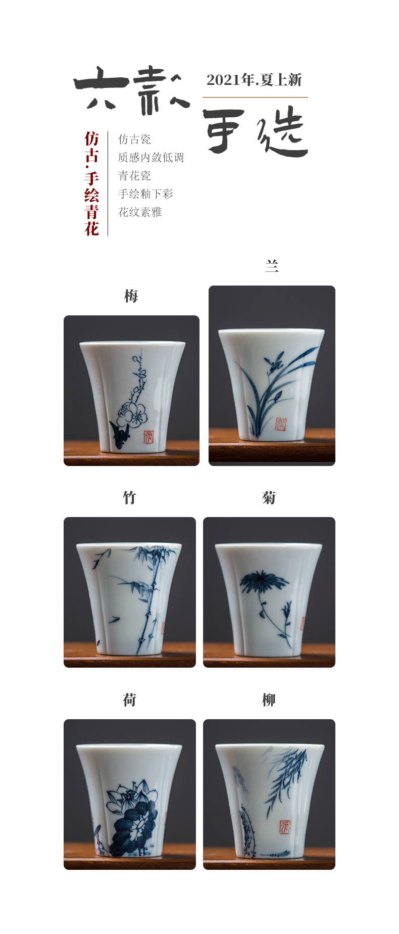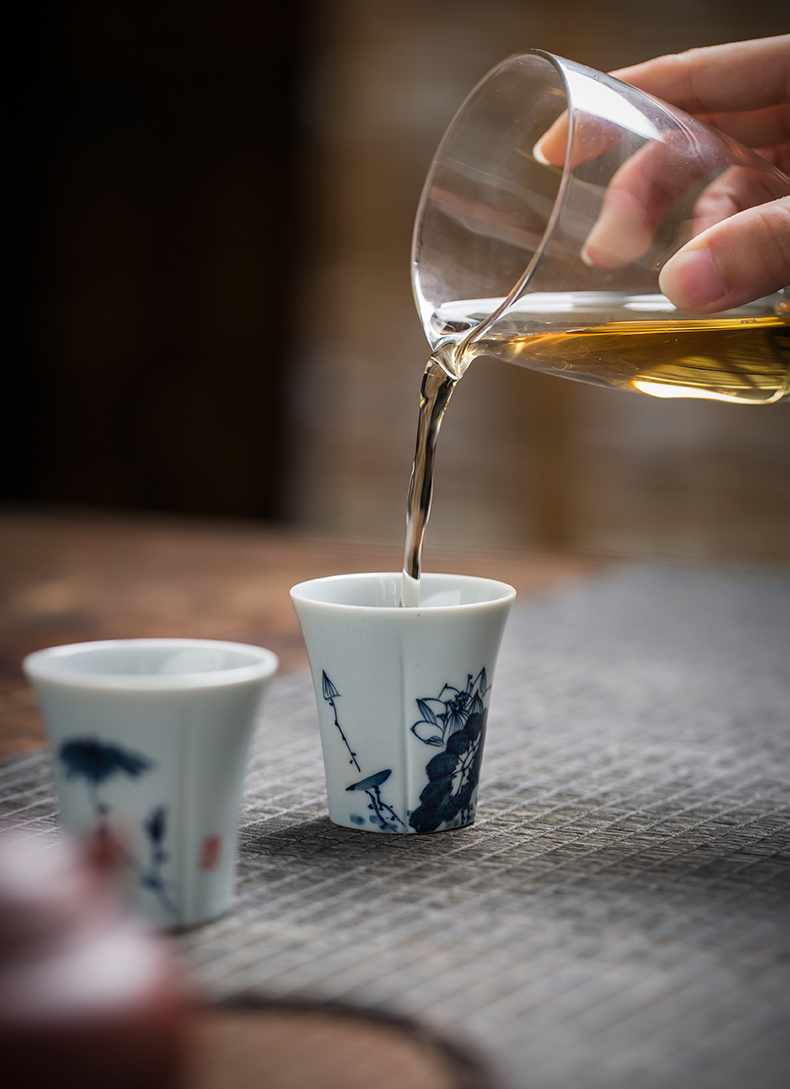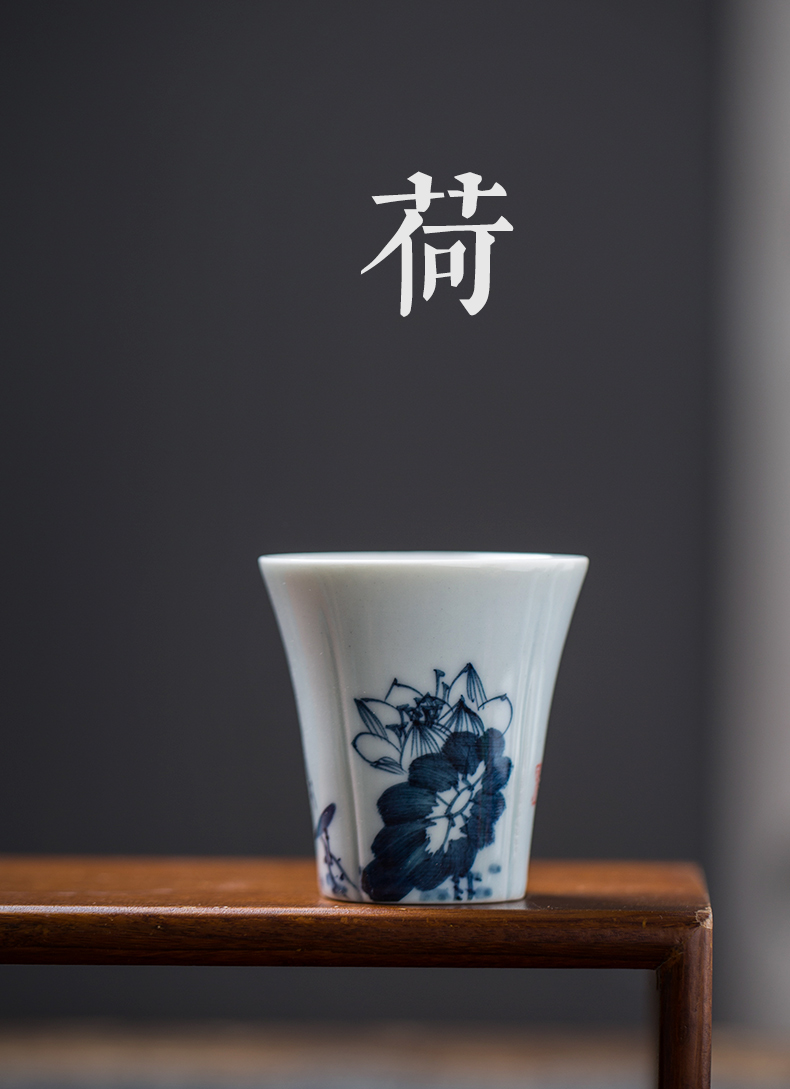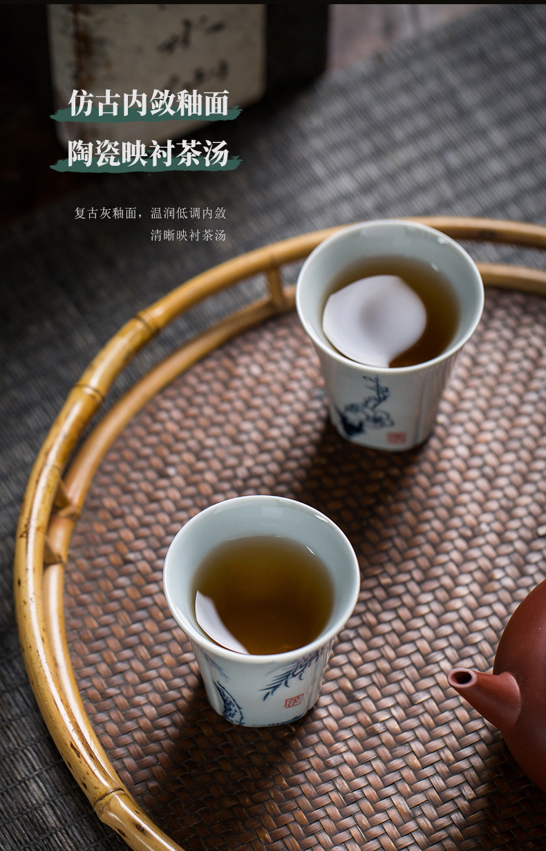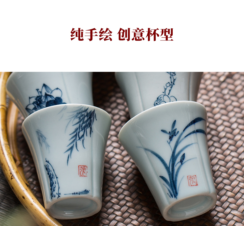 永利汇青花绘画陶瓷茶杯小号功夫茶具单个茶道品茗杯主人杯日式