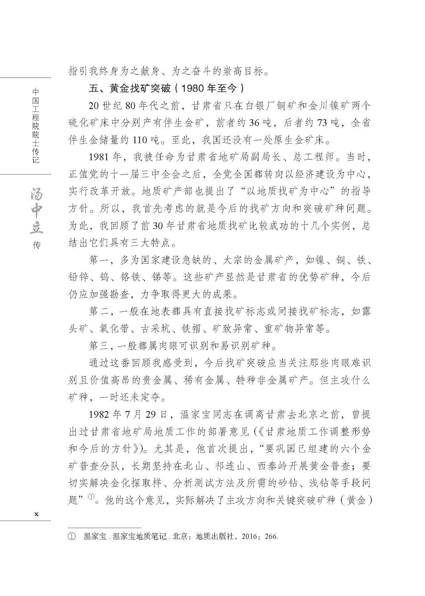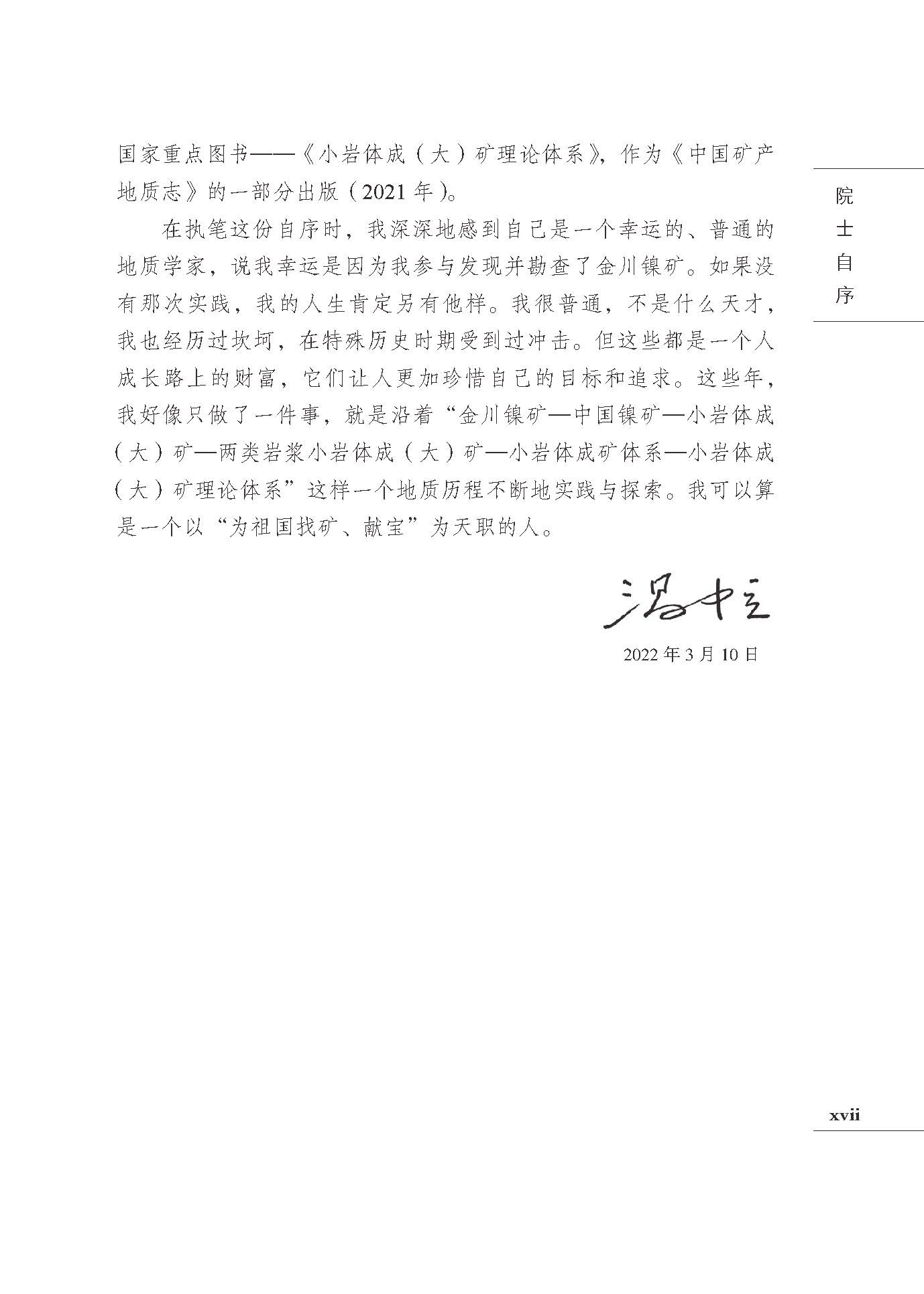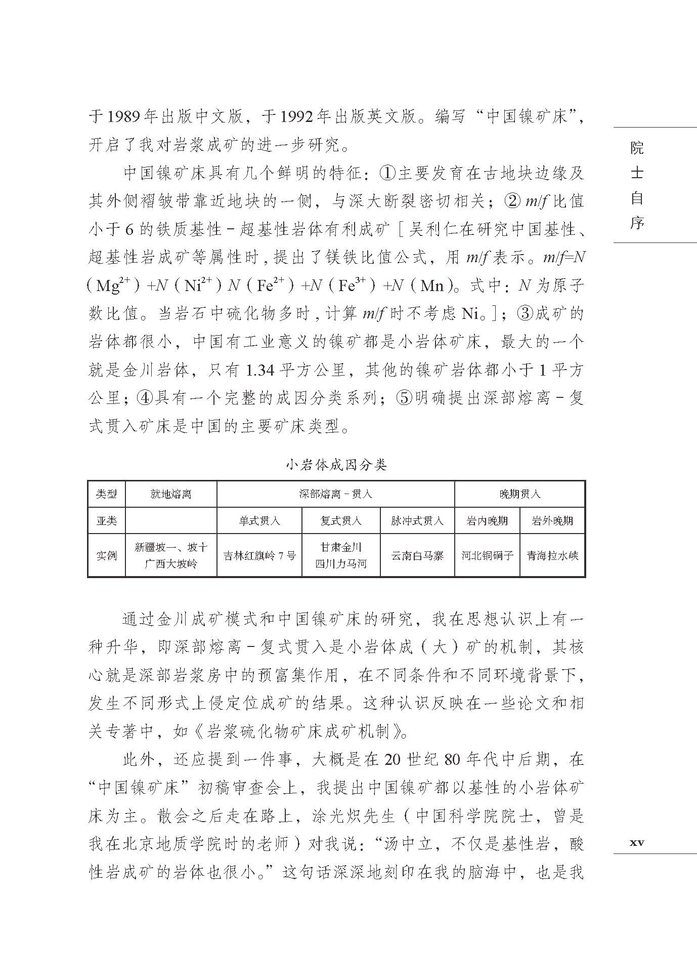 汤中立是中国工程院院士,矿产勘查专家、矿床地质学家。长期从事矿产勘查和地质矿产研究工作,是中国镍矿工业和甘肃省金矿工业的开拓者之一,其中对金川镍矿二矿区深部隐伏矿体的勘探和突破,使其跃升为世界第三大镍矿。他提出了“深部熔离-多次脉动式贯入-终端岩浆房聚集成矿”模式及“小岩体成(大)矿”理论。以上工作对我国矿产勘查和地质矿产研究工作起到了重要作用,理论成果在国内外被广泛引用。本书客观、全面、完整地记录了汤中立院士为地质科学辛勤耕耘的一生,总结了他的学术成就,以及他敏于思考、勤于探索、勇于开拓、善于总结的学术作风和工作态度,彰显了他的精神风范和人格魅力,以期继承和发扬他的学术思想,为年轻学子提供学习楷模,并激励他们为我国的科学、教育事业做出贡献。