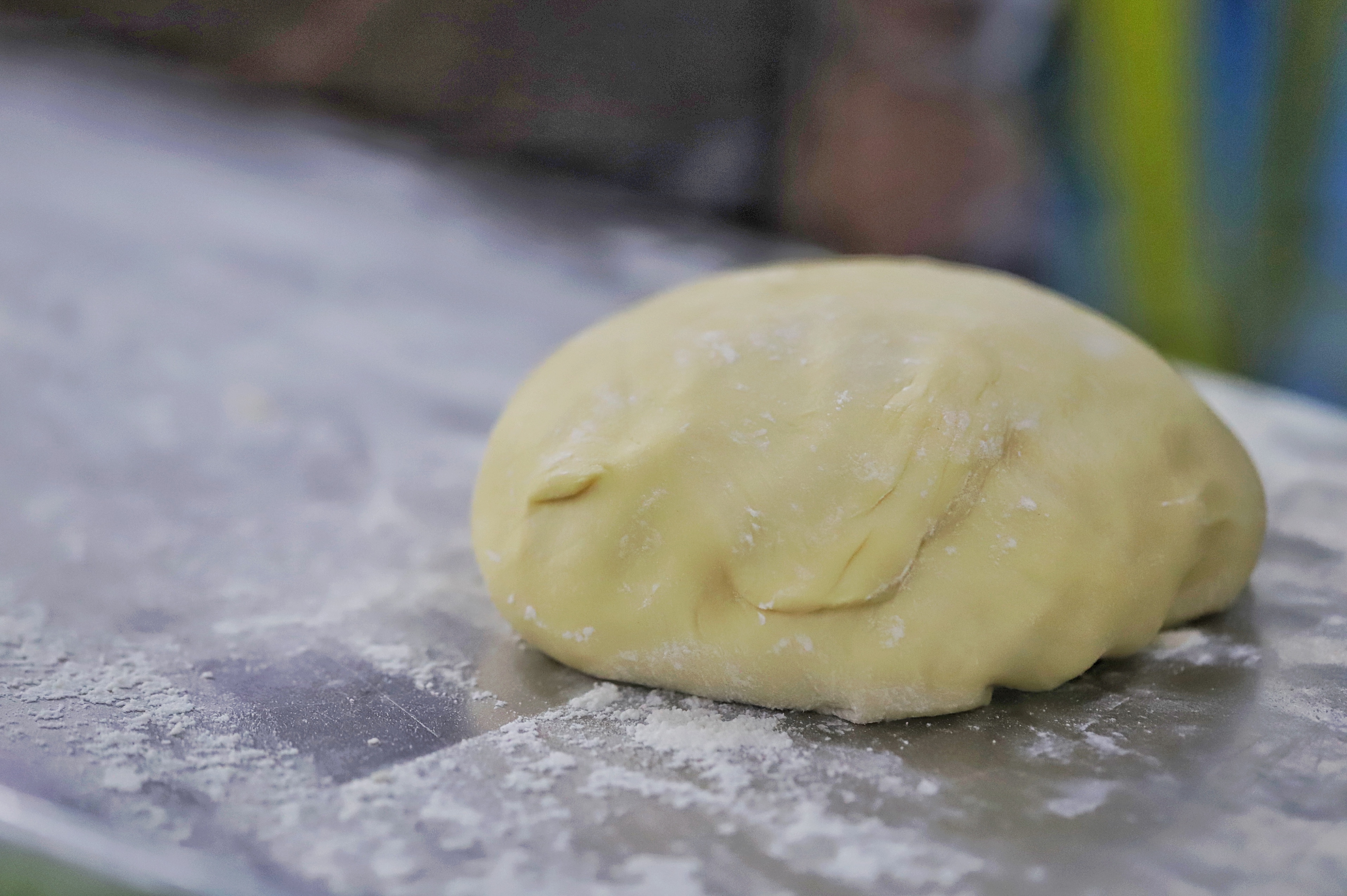 3.制作面皮和面芯将安佳黄油加入面粉进行揉搓、拉筋后制作成面皮和面芯