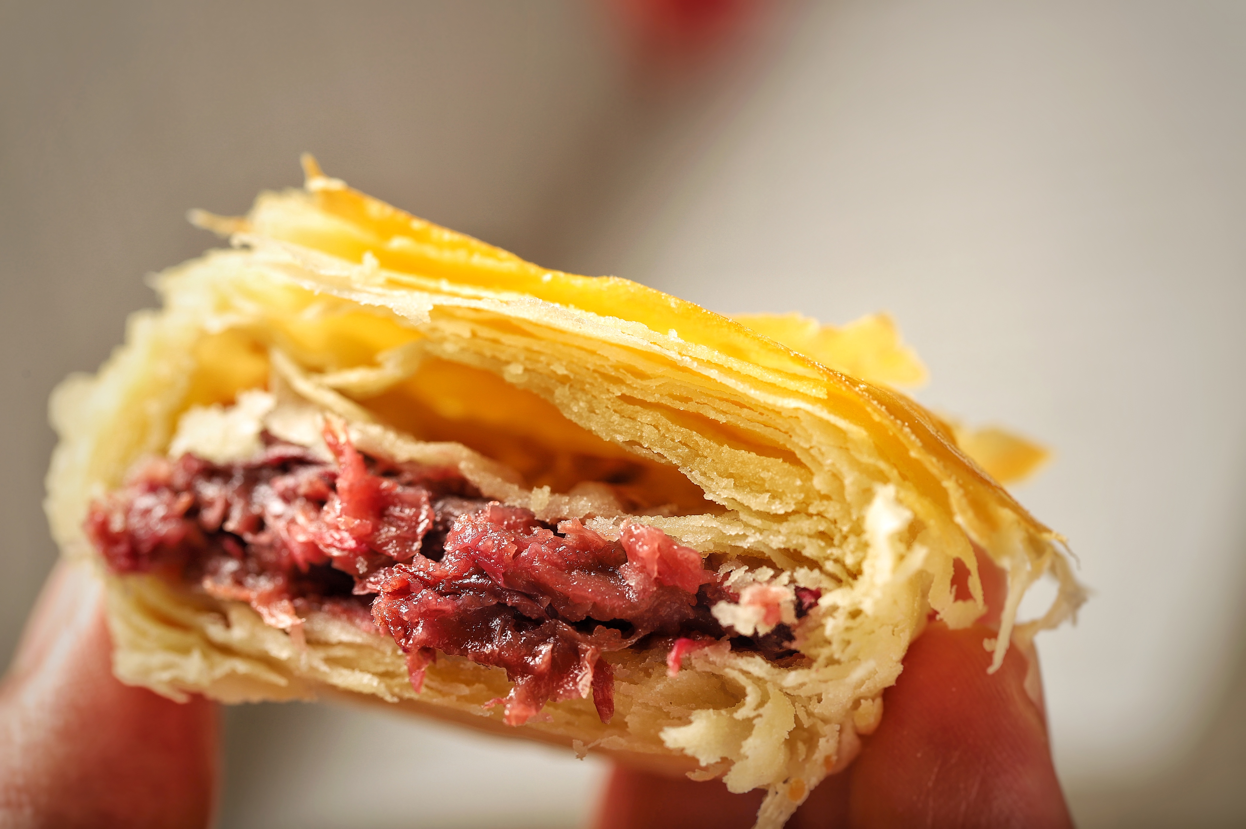3.采用云南鲜花饼传承老技艺“十八层开酥工艺”使饼皮层次感更丰富