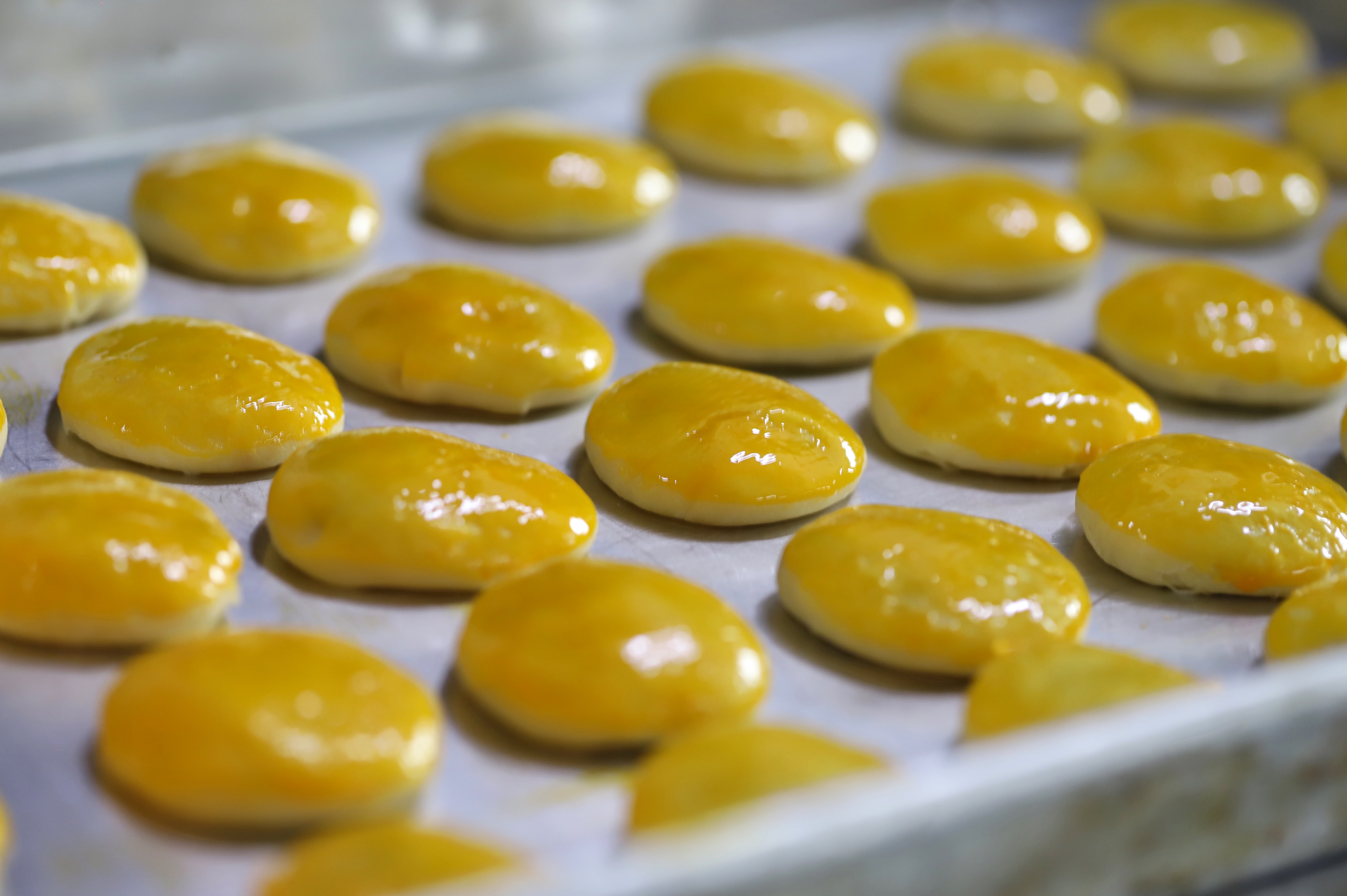 4.制饼将鲜花馅包裹入饼皮之中,刷蛋黄油(只有玫瑰鲜花饼刷蛋黄油,抹茶鲜花饼是不刷蛋黄油的),烤制18分钟后,美味的鲜花饼就制作完成了。