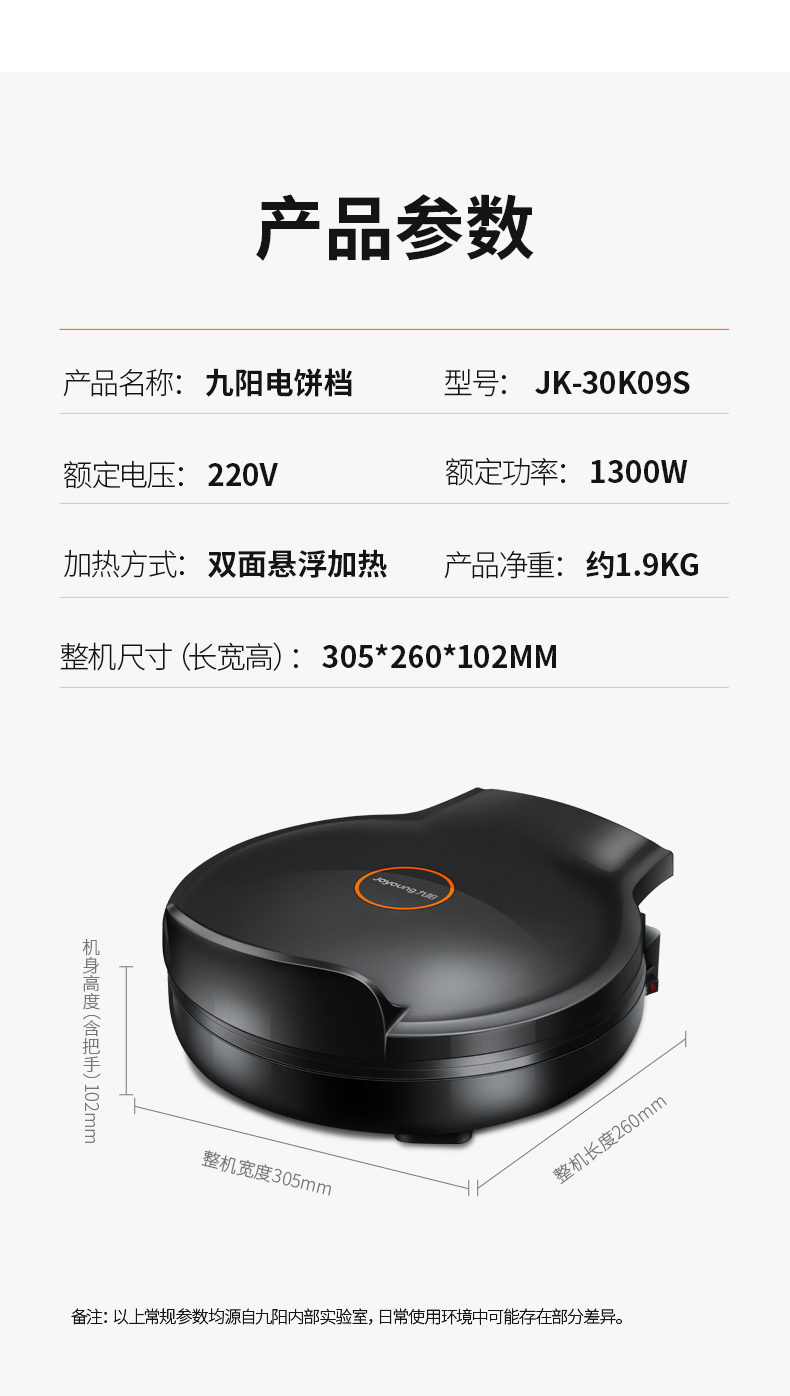 【加深烤盘】Joyoung/九阳JK-30K09S电饼铛双面悬浮加热煎烤机